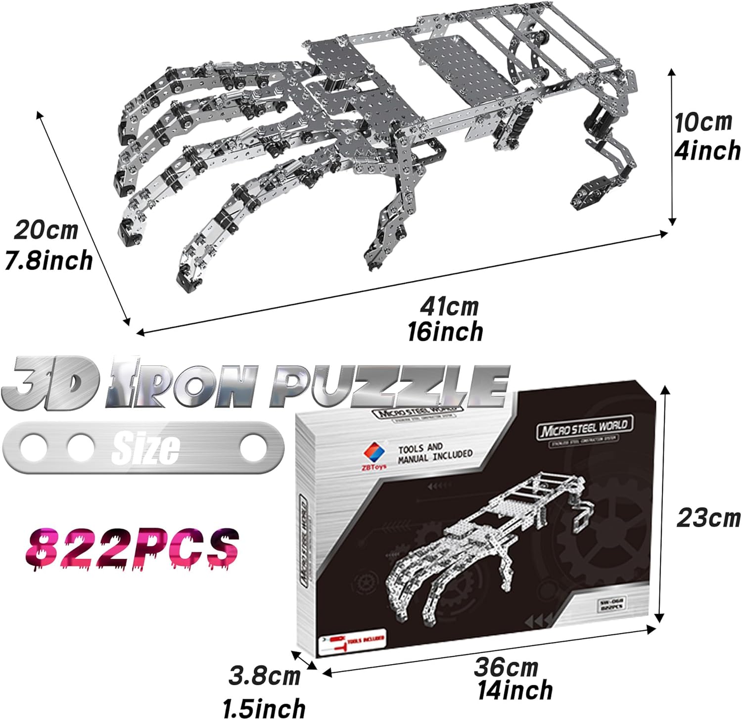 簡易組裝:套件共有 822 個零件,附有彩色立體圖形說明書和組裝工具,易於理解和組裝,即使是兒童也能按步驟完成組裝,幫助孩子了解組裝工具,學習生活技能。與傳統積木和拼圖相比,金屬組裝模型更有趣且具有挑戰性。