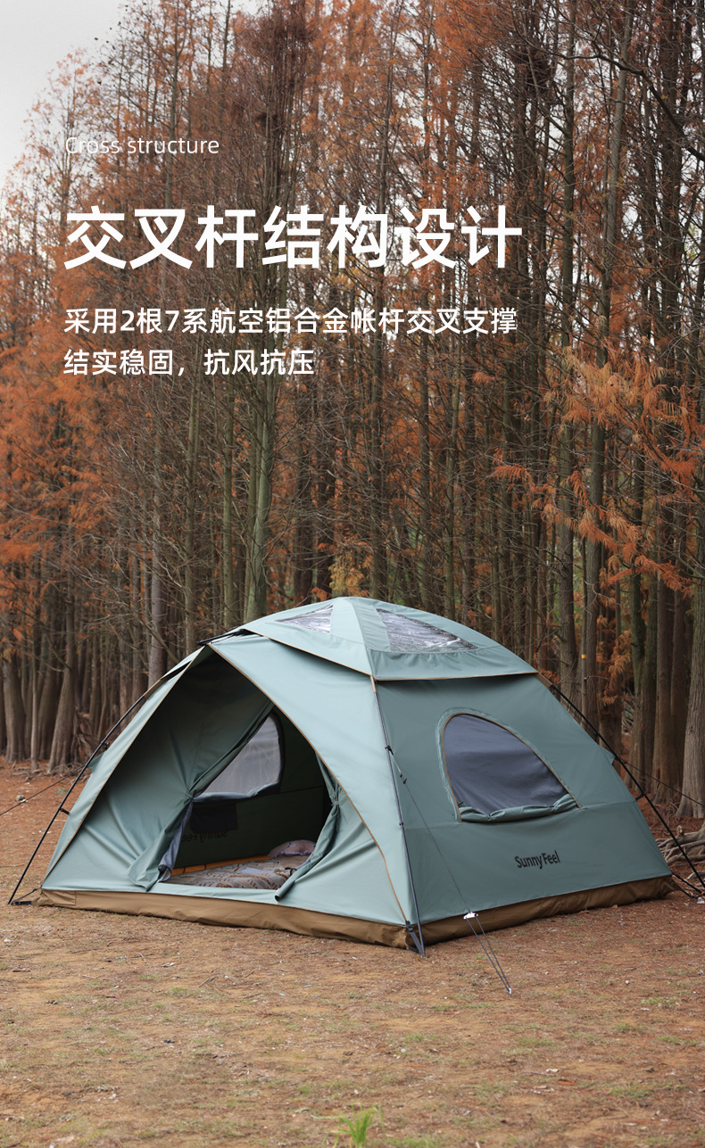 ▸採用2根7系航空鋁合金帳桿交叉支撐,結實穩固,抗風抗壓。