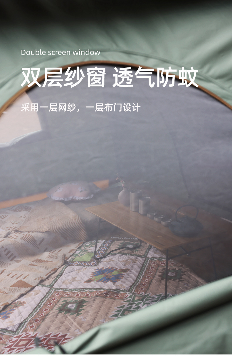 ▸多窗戶設計,通風透光;全面覆蓋網紗,防蚊防蟲。