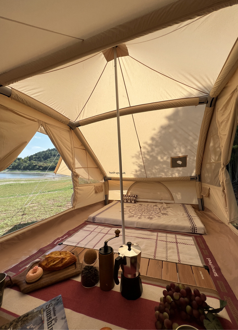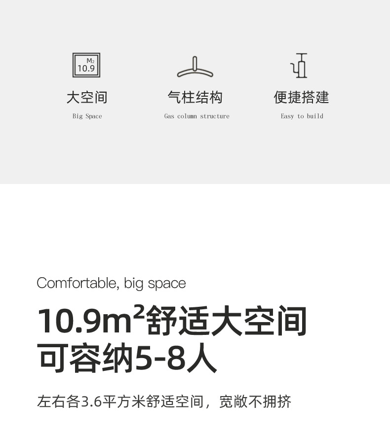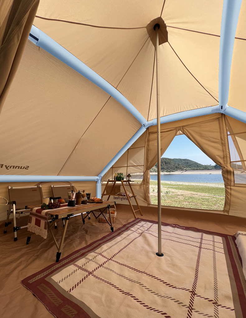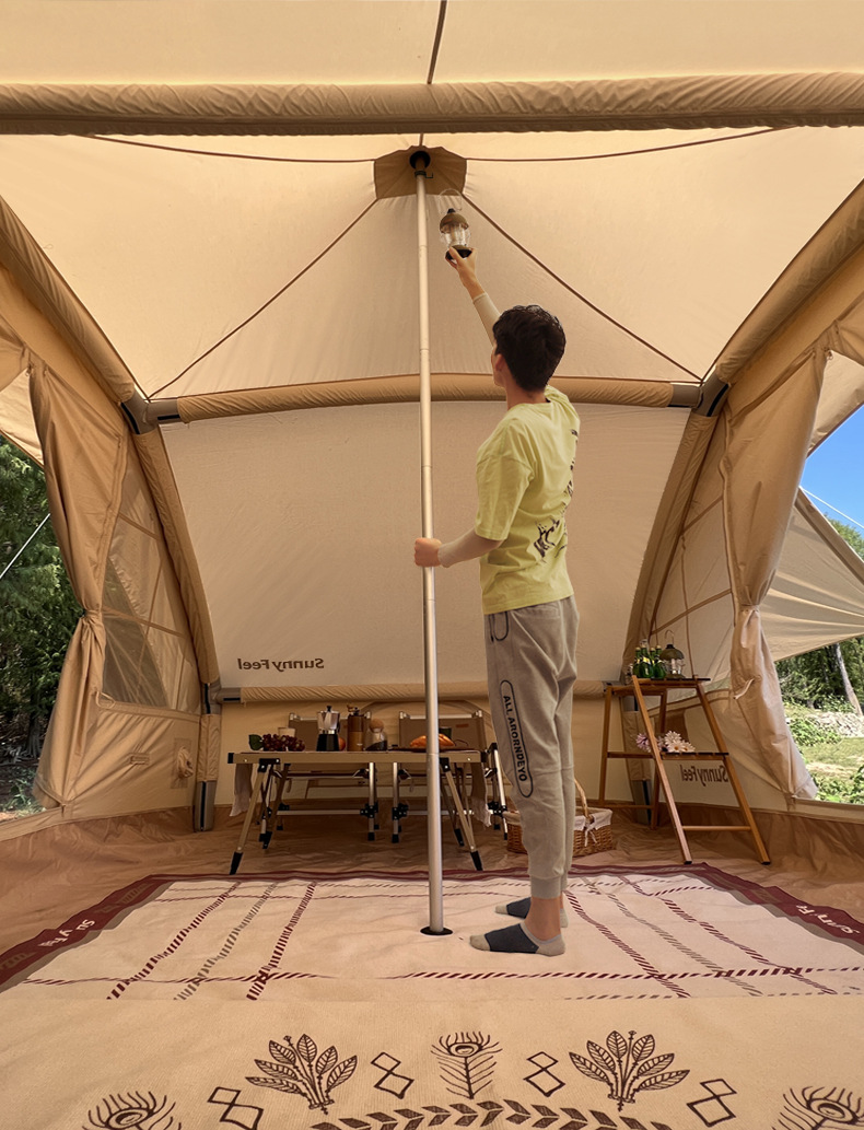 ▸一體式氣柱支撐結構,充氣後迅速搭建成型,搭配居中鋁桿,支撐起來更穩固。