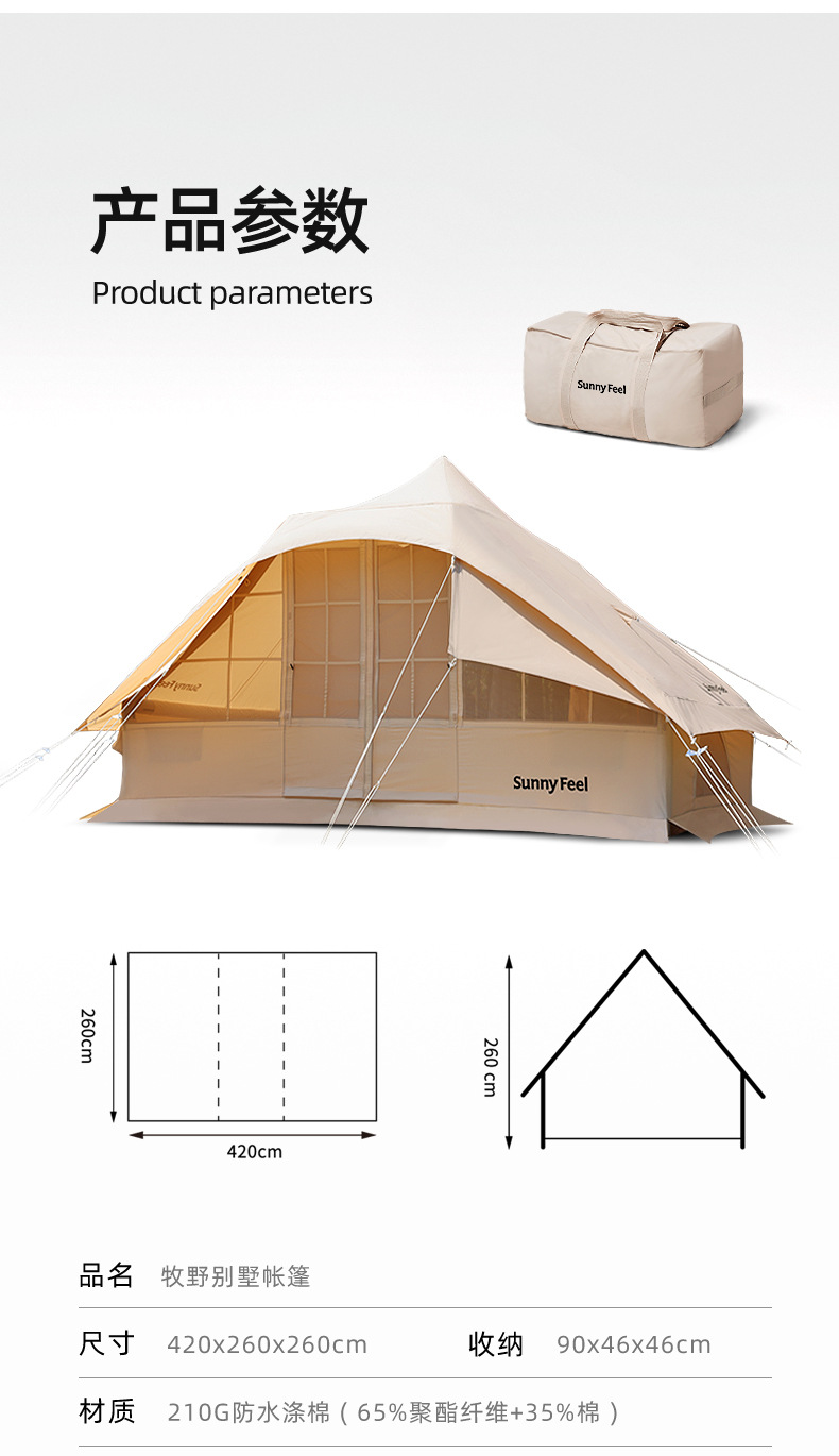 SunnyFeel戶外露營春日帳篷野營超大春帳棉布5人帳篷遮陽天幕防雨