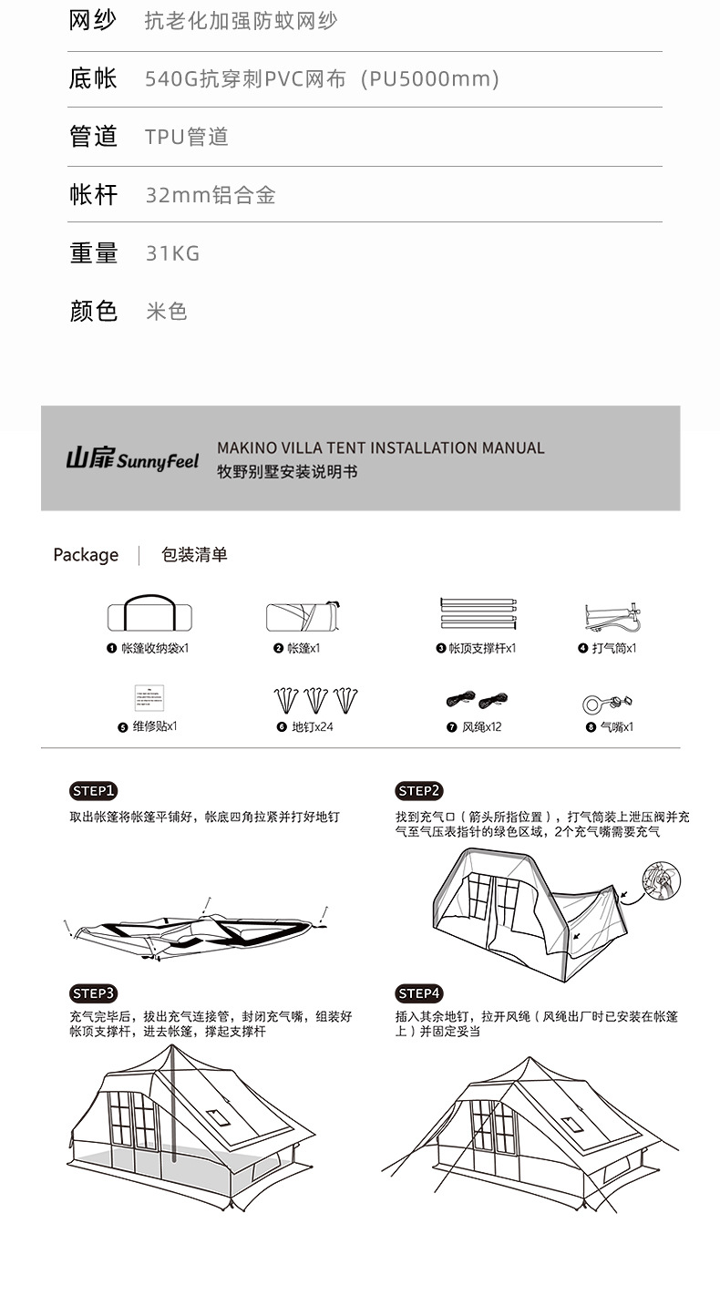 ▸配備打氣筒,省時省力,輕鬆搭建帳篷。
