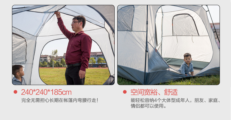 ▸加大帳篷空間,輕鬆容納4-5人,無需彎腰行走。