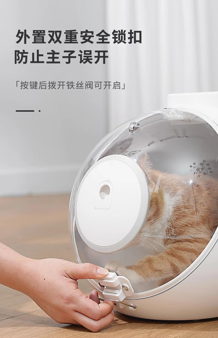 ▸外置雙重安全鎖扣,防止貓咪誤開逃出。