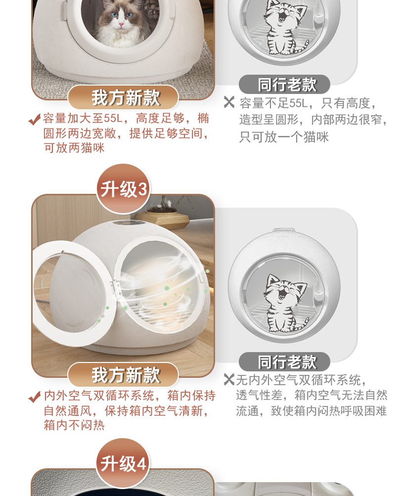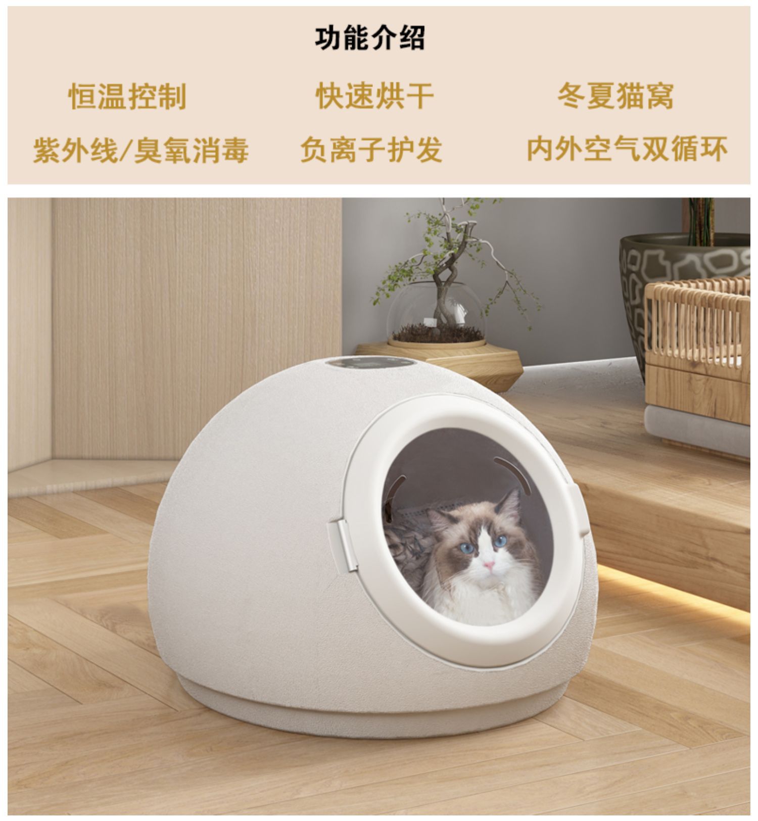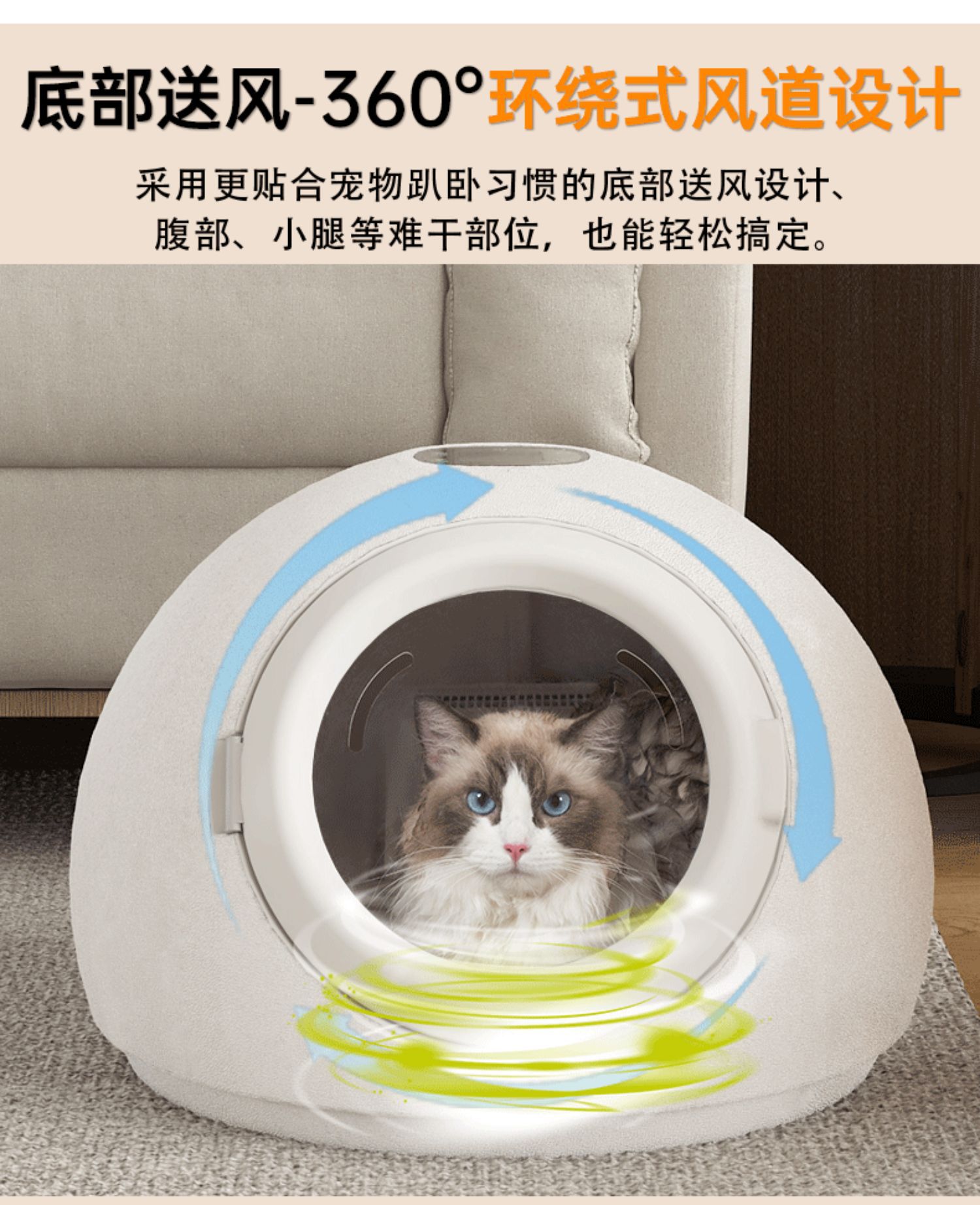 ▸四擋調風:吹風可強可弱,冬暖夏涼,可用作貓窩。