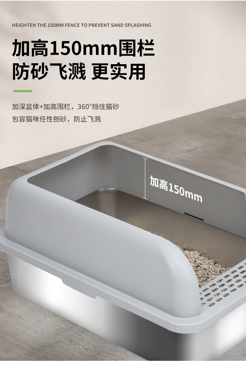 ▸加深盆體+加高圍欄,防止貓咪刨砂,讓貓砂飛濺。