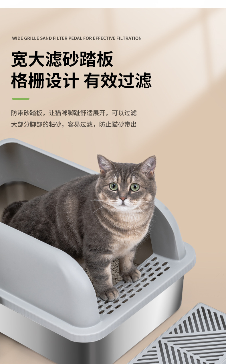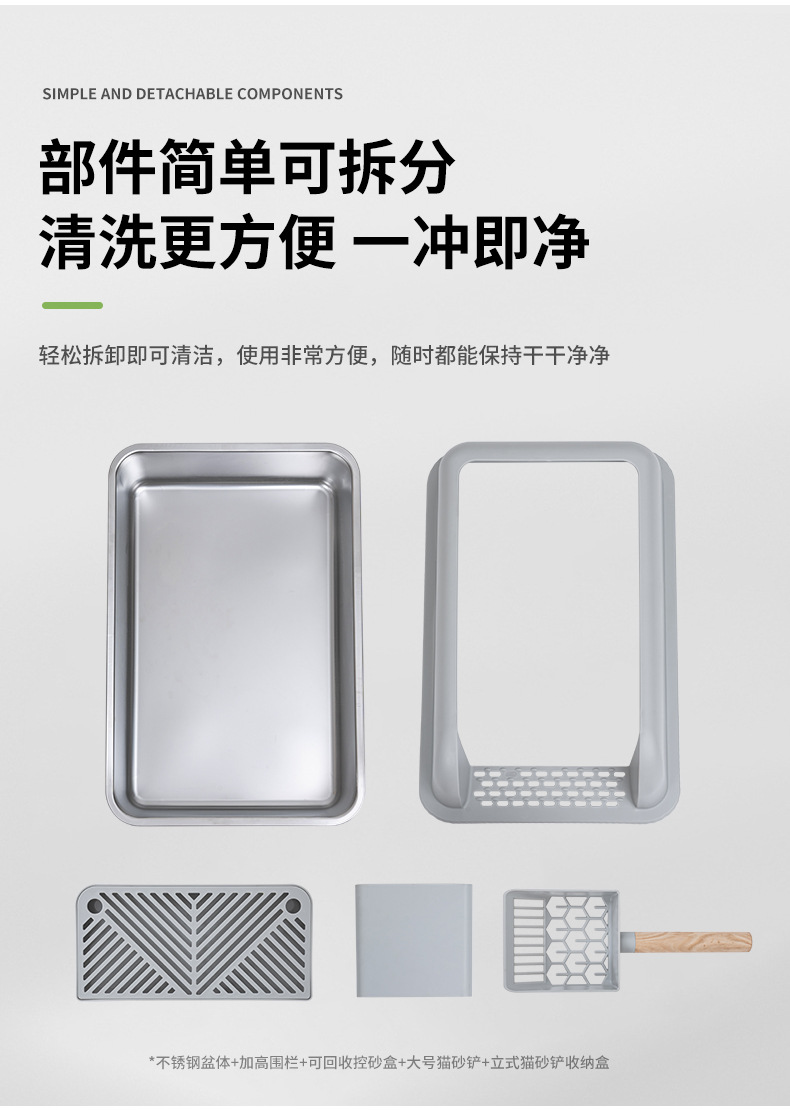 ▸優選不鏽鋼,耐用不易變形,貓砂不粘底,一沖即乾淨。