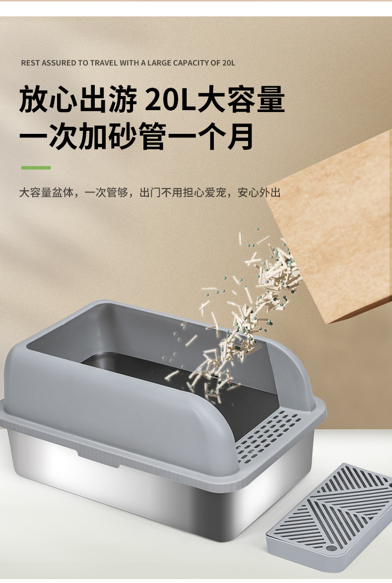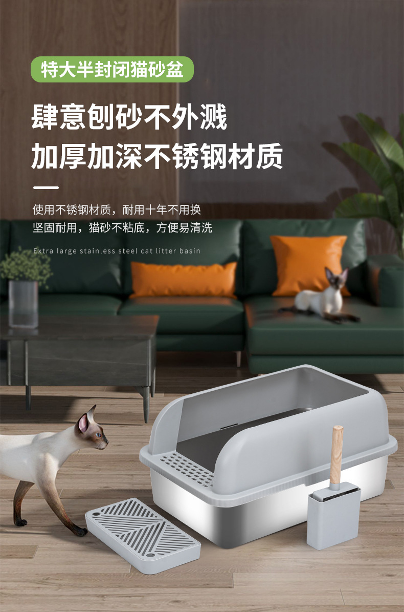 產品:半封閉304不銹鋼貓砂盆