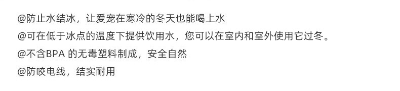 無毒塑料不含BPA,安全自然。為保障寵物安全,電線由全金屬管包裹保護,防止愛寵因咬破電線而觸電。