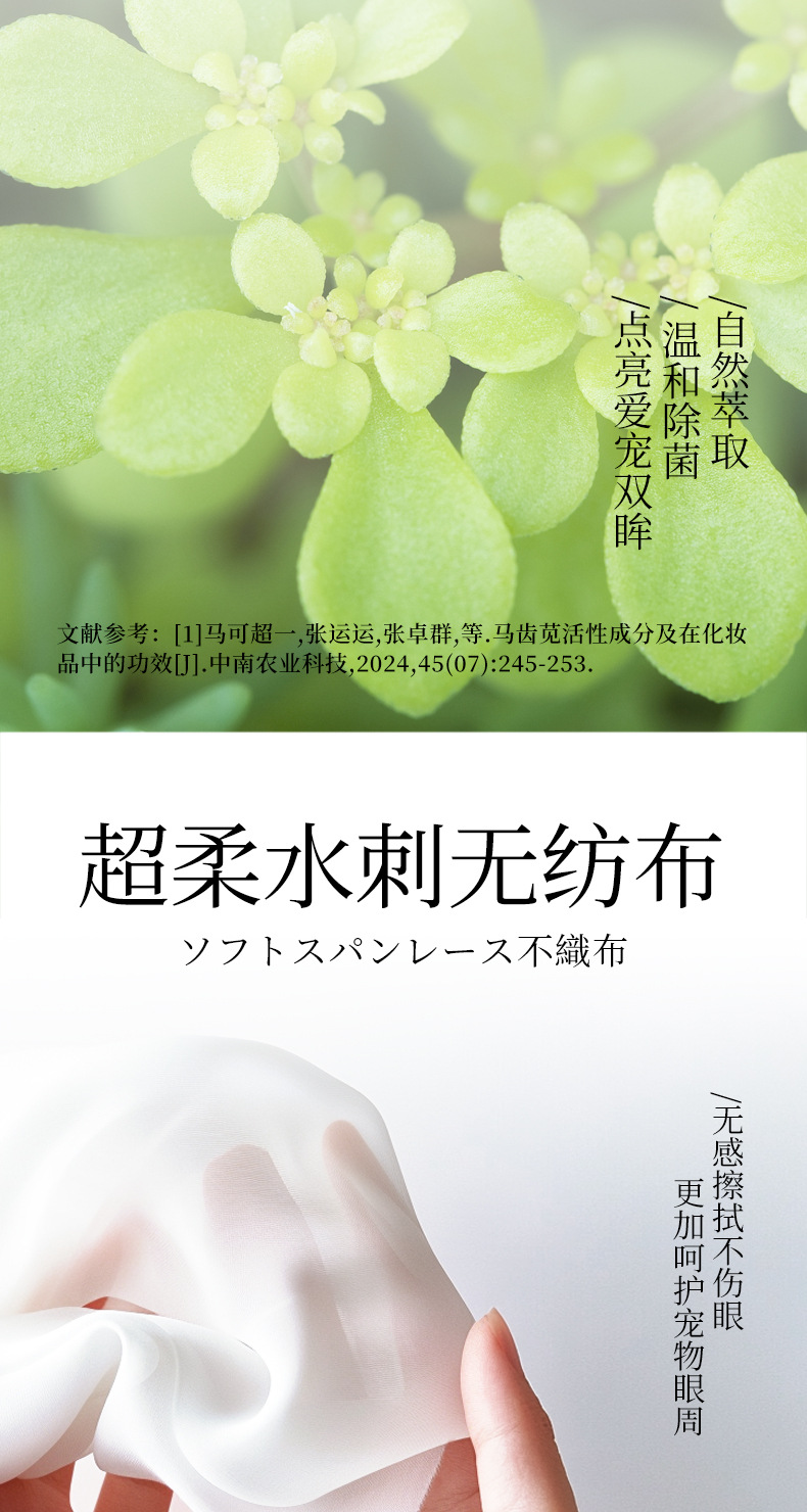 原料:水刺無紡布、去離子水、西砒氯銨、維生素E、馬齒筧提取液等