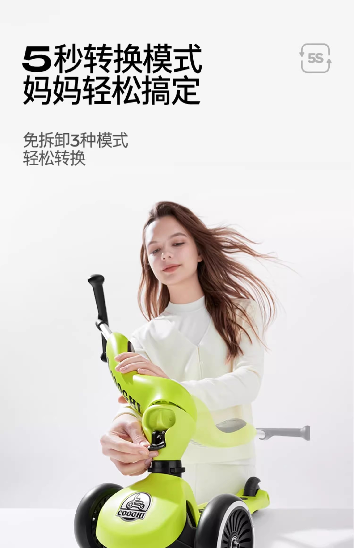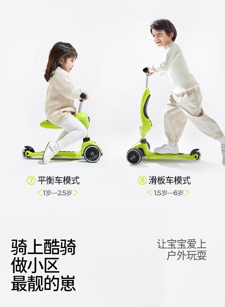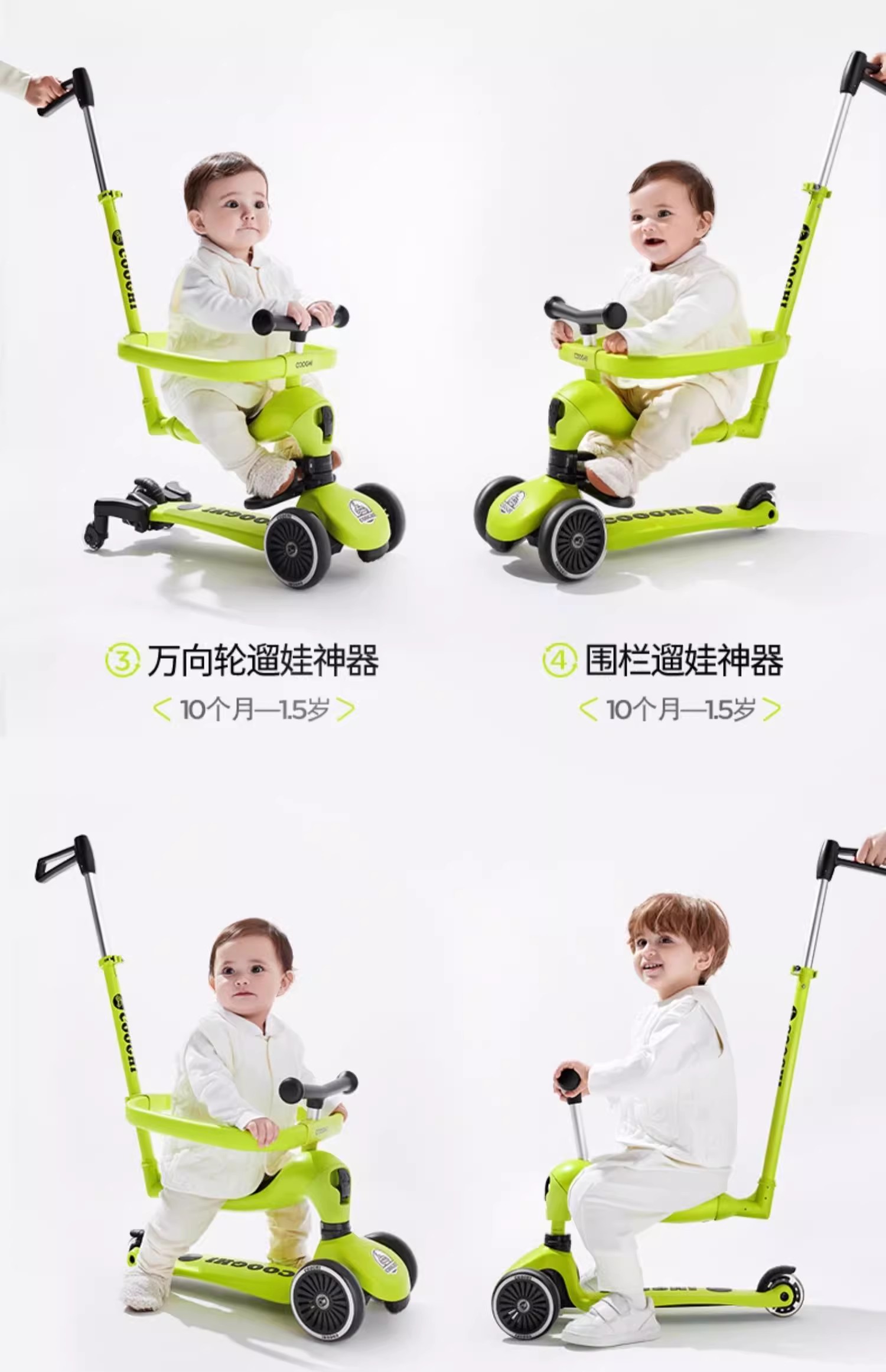全能型滑板車,一部用作溜娃車、學步車、滑板車、平衡車,10個月到6歲也不用換車!