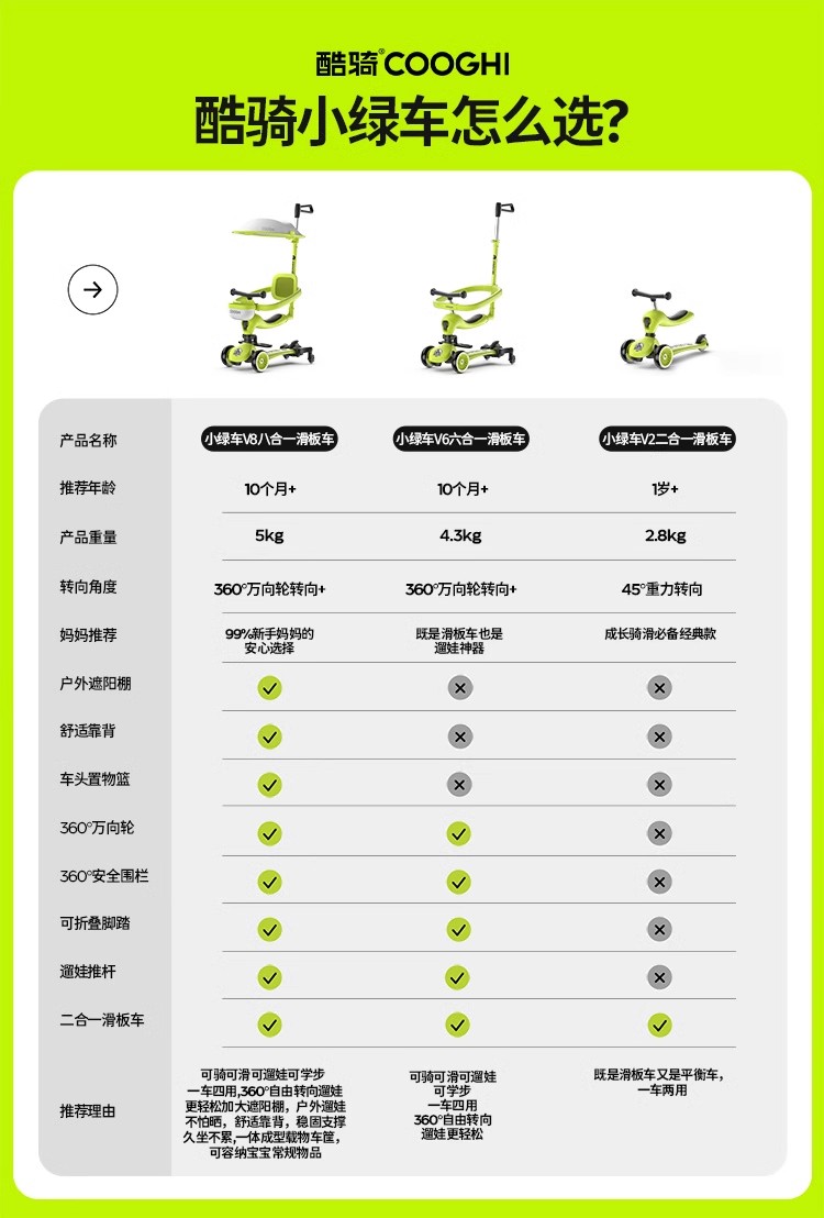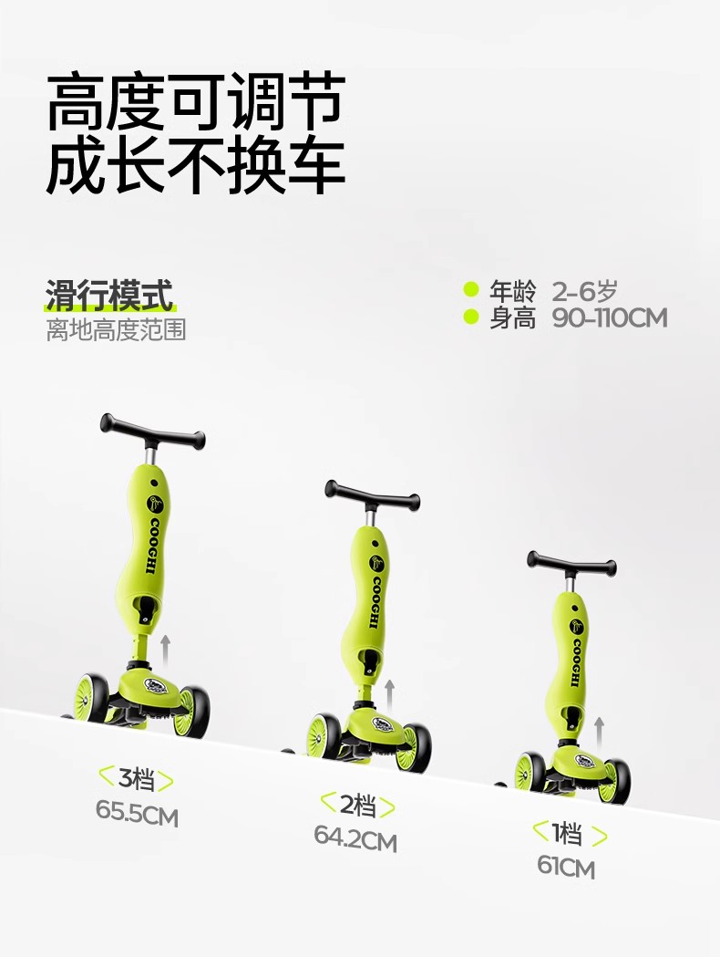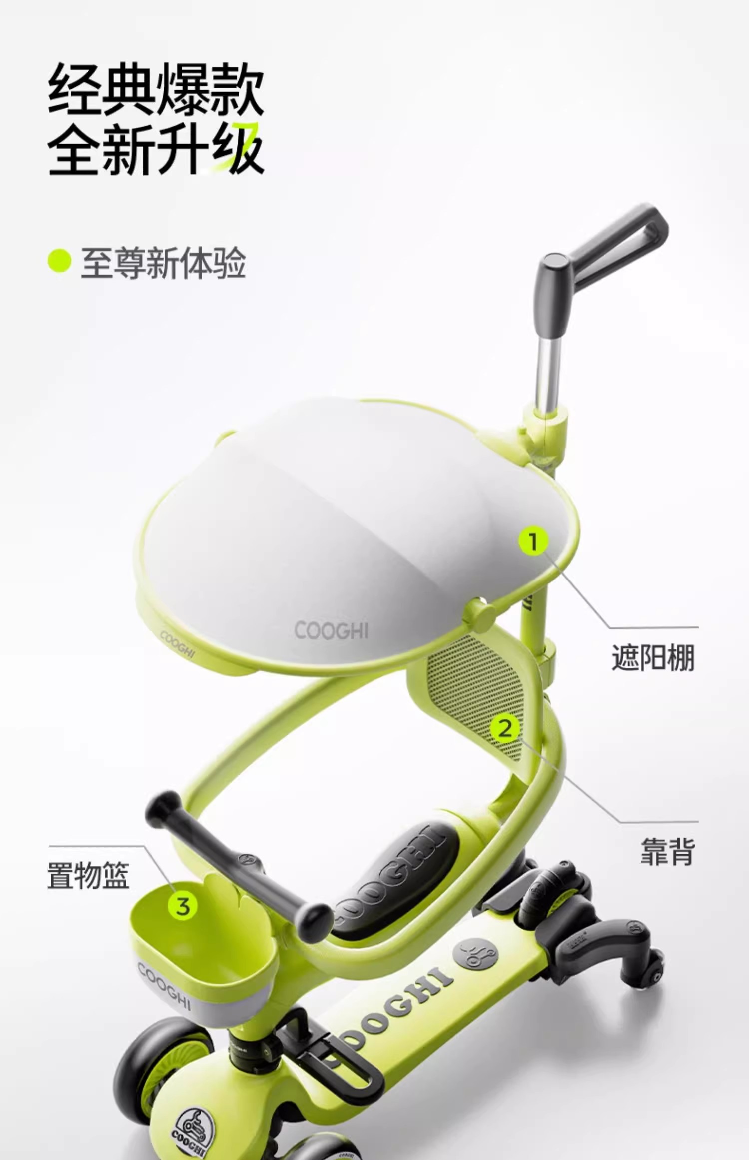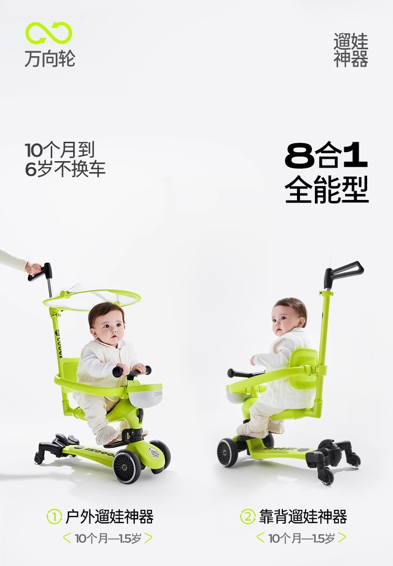 全能型滑板車,一部用作溜娃車、學步車、滑板車、平衡車,10個月到6歲也不用換車!