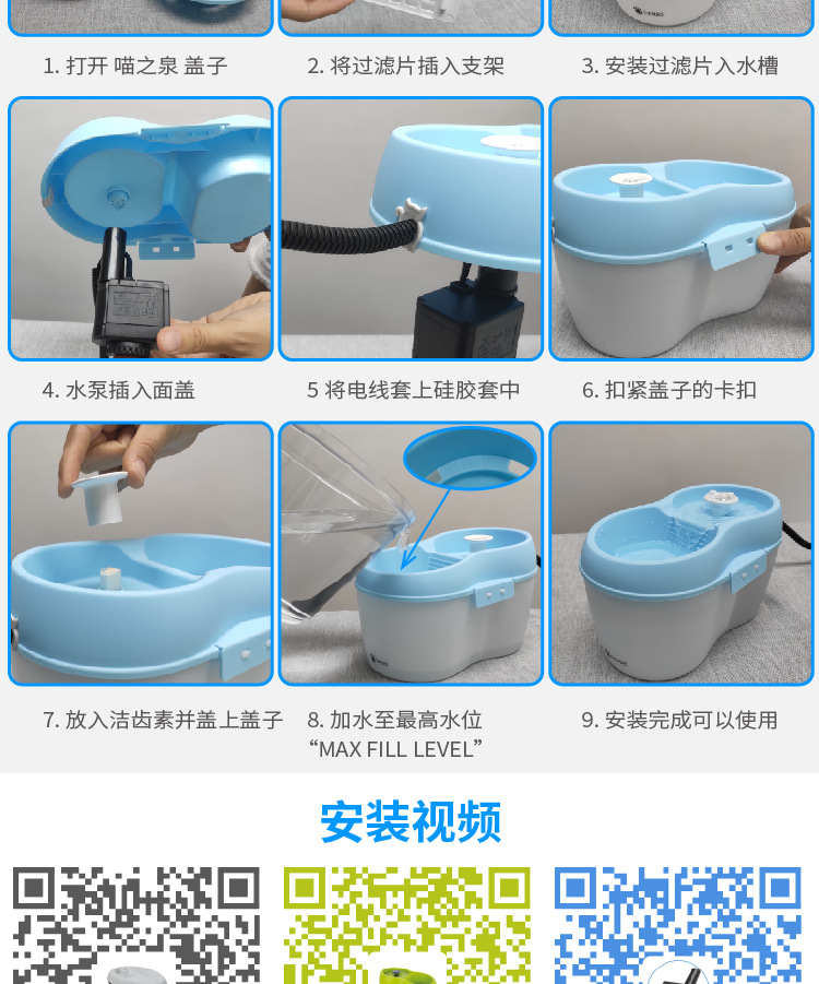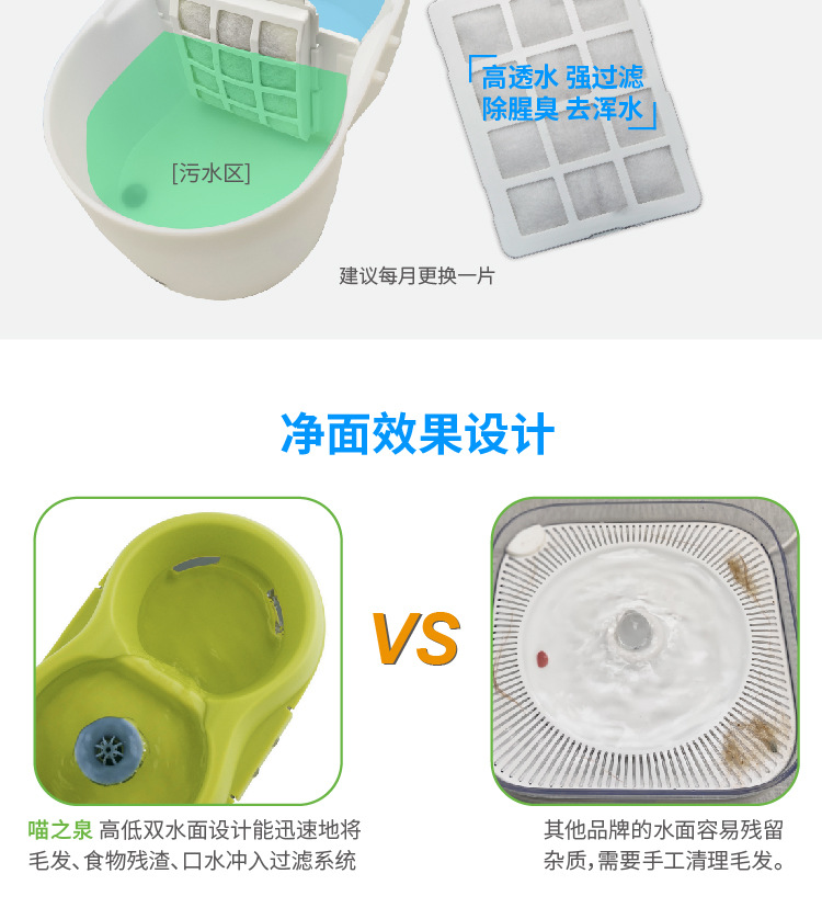 採用噴泉流水設計⛲更接近自然的水流效果,讓貓咪愛上喝水。