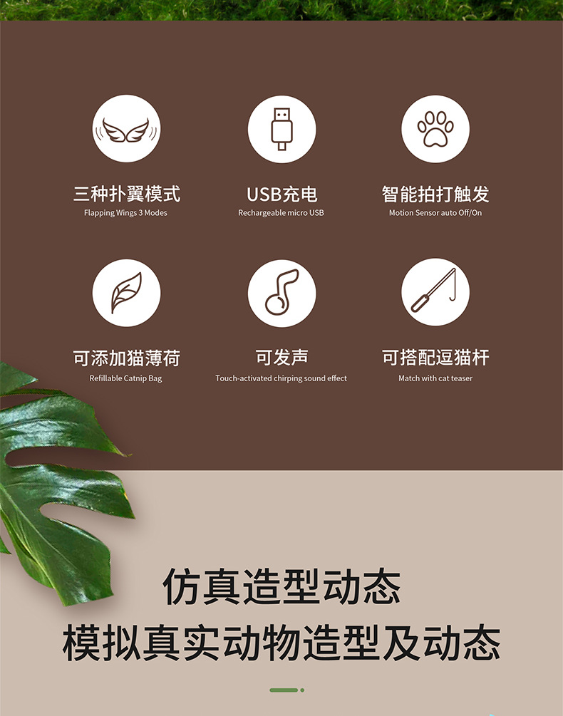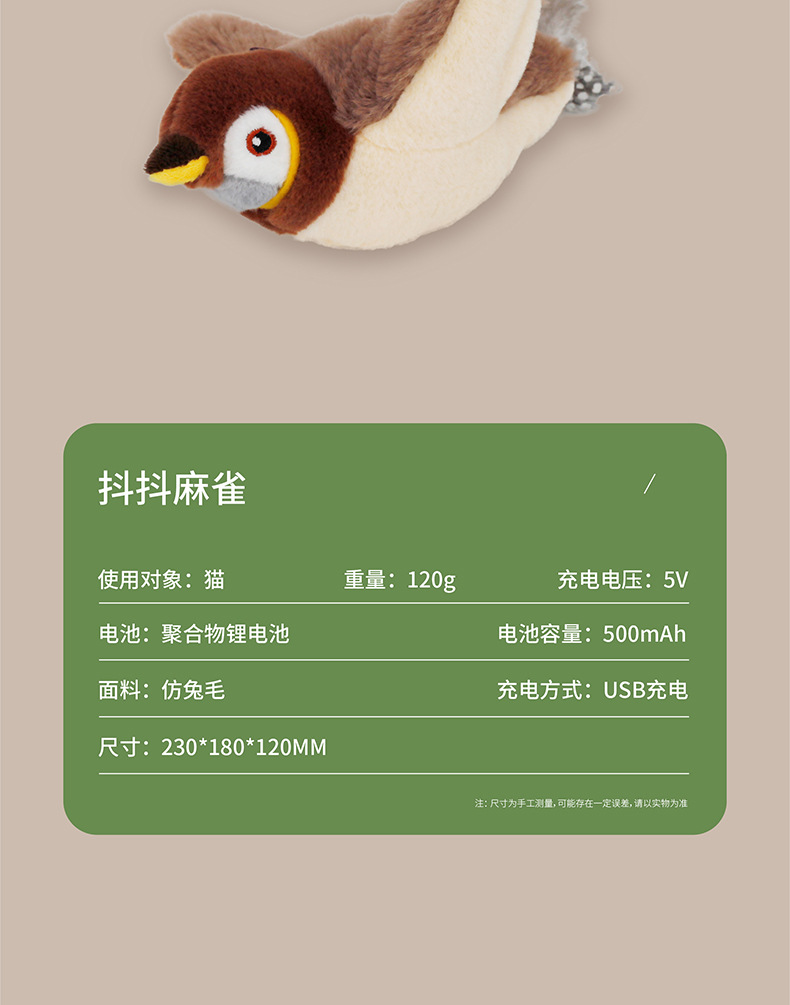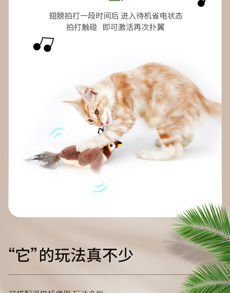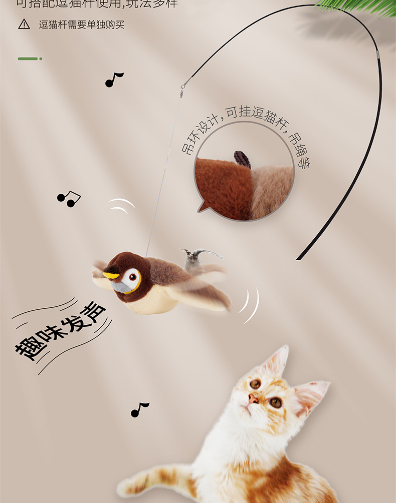 ● 可添加貓薄荷,打開麻雀背部拉鏈放入即可。