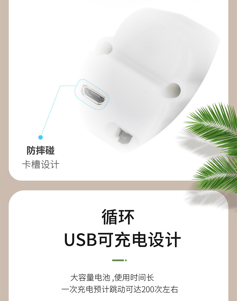 ● USB充電設計,一次充電可跳動達200次左右。