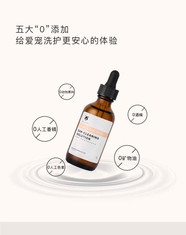 翻開愛寵耳朵,用滴管吸取適量潔耳液滴入寵物耳道;