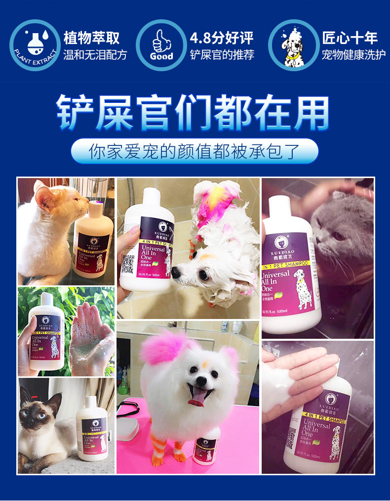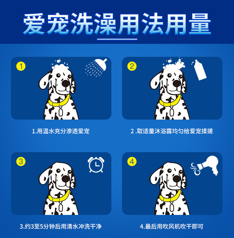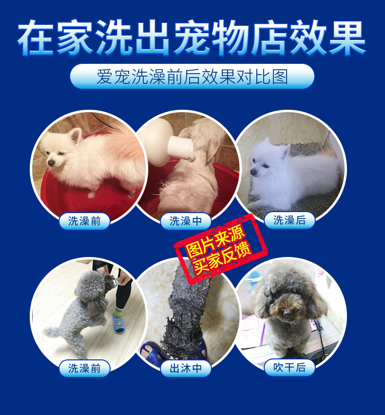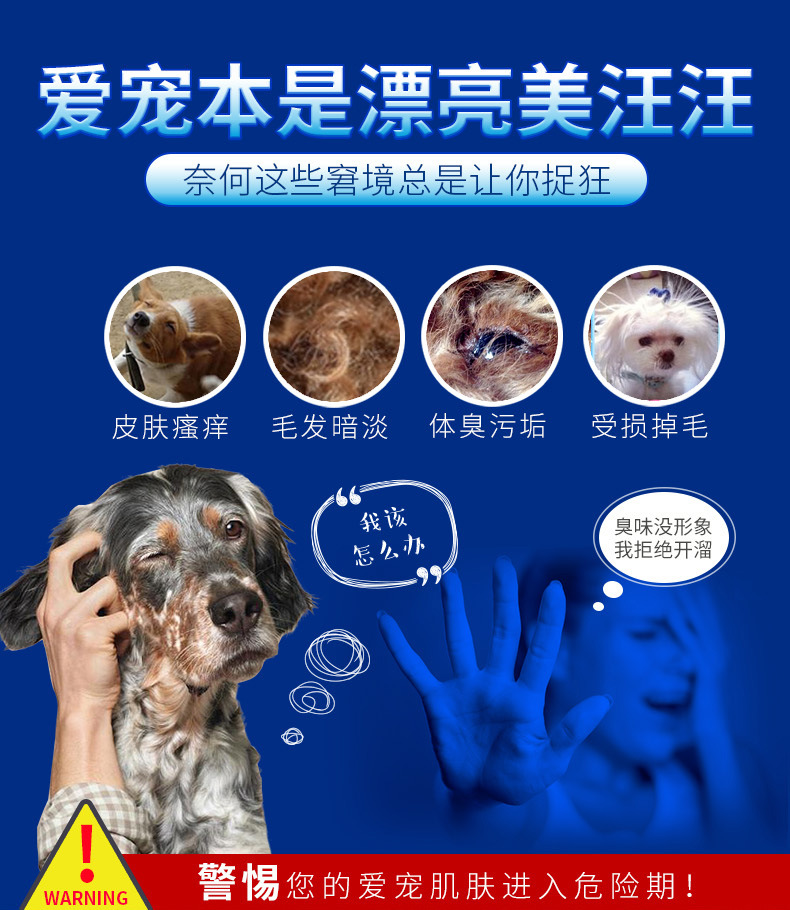 清潔去污:清潔去汙,持久清新留香,為寵物清潔的同時能滲透寵物皮膚,起到除味去汙、滋養毛髮的效果。