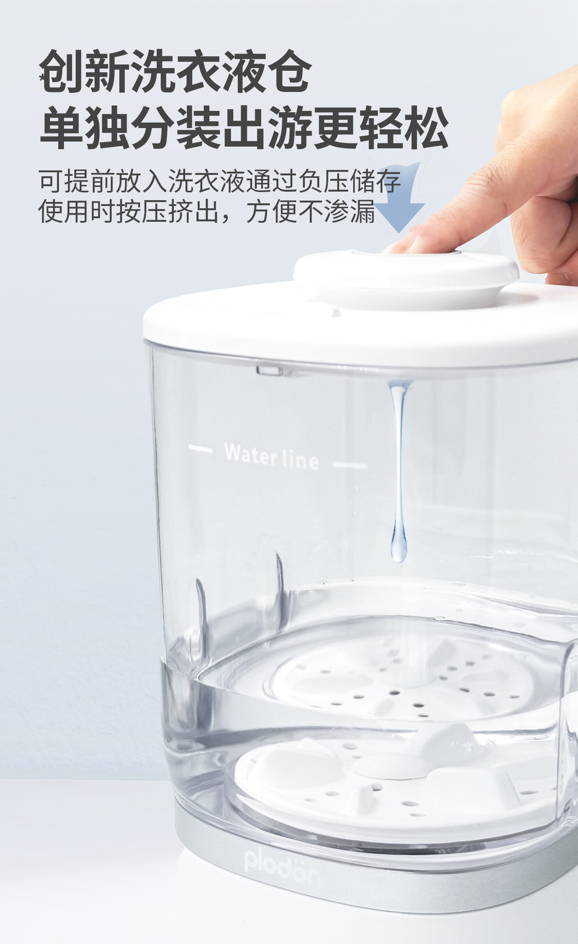● 創新洗衣液存儲器,一按擠出更方便。