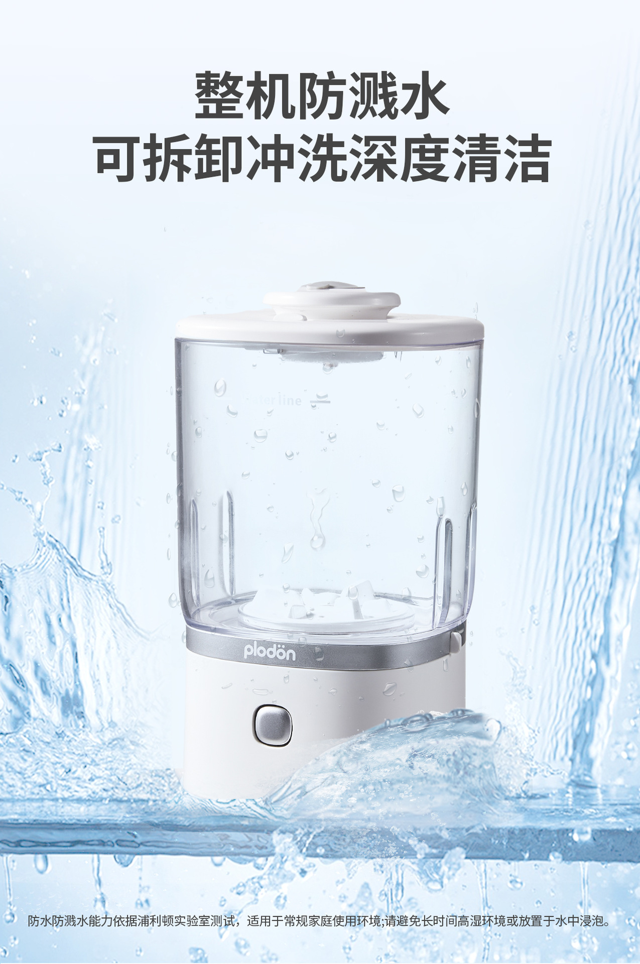 ● 整機防濺水,機身可拆卸清潔。
