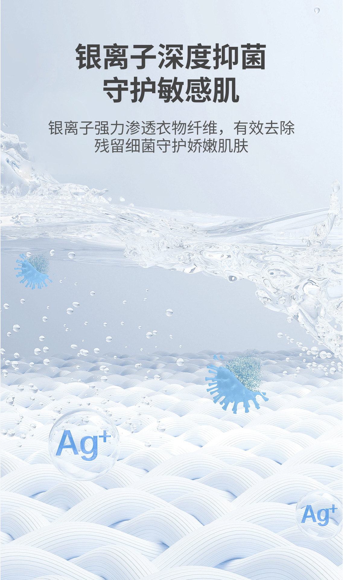 ● 銀離子強力滲透衣物,有效抑菌守護健康。