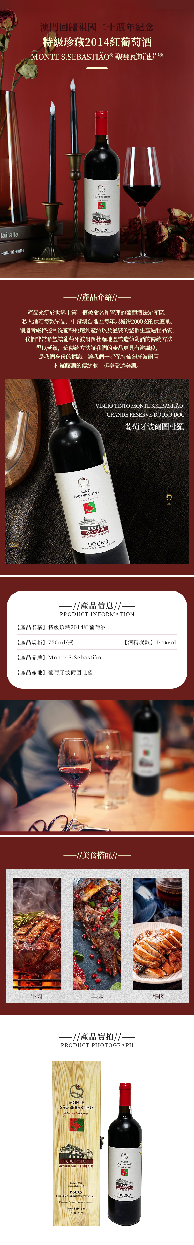 產品:聖賽瓦斯迪岸 特級珍藏紅葡萄酒 澳門回歸二十週年
