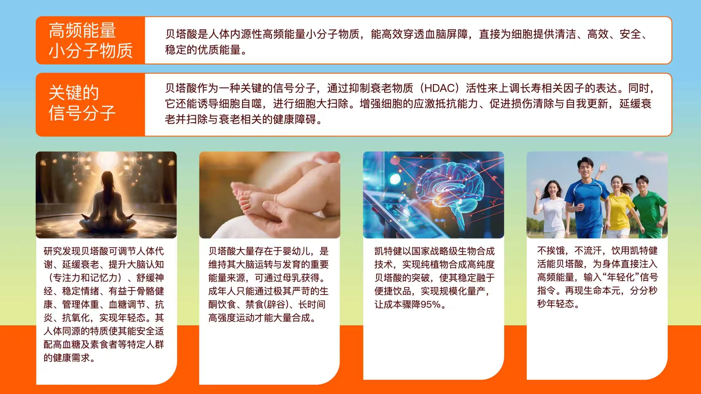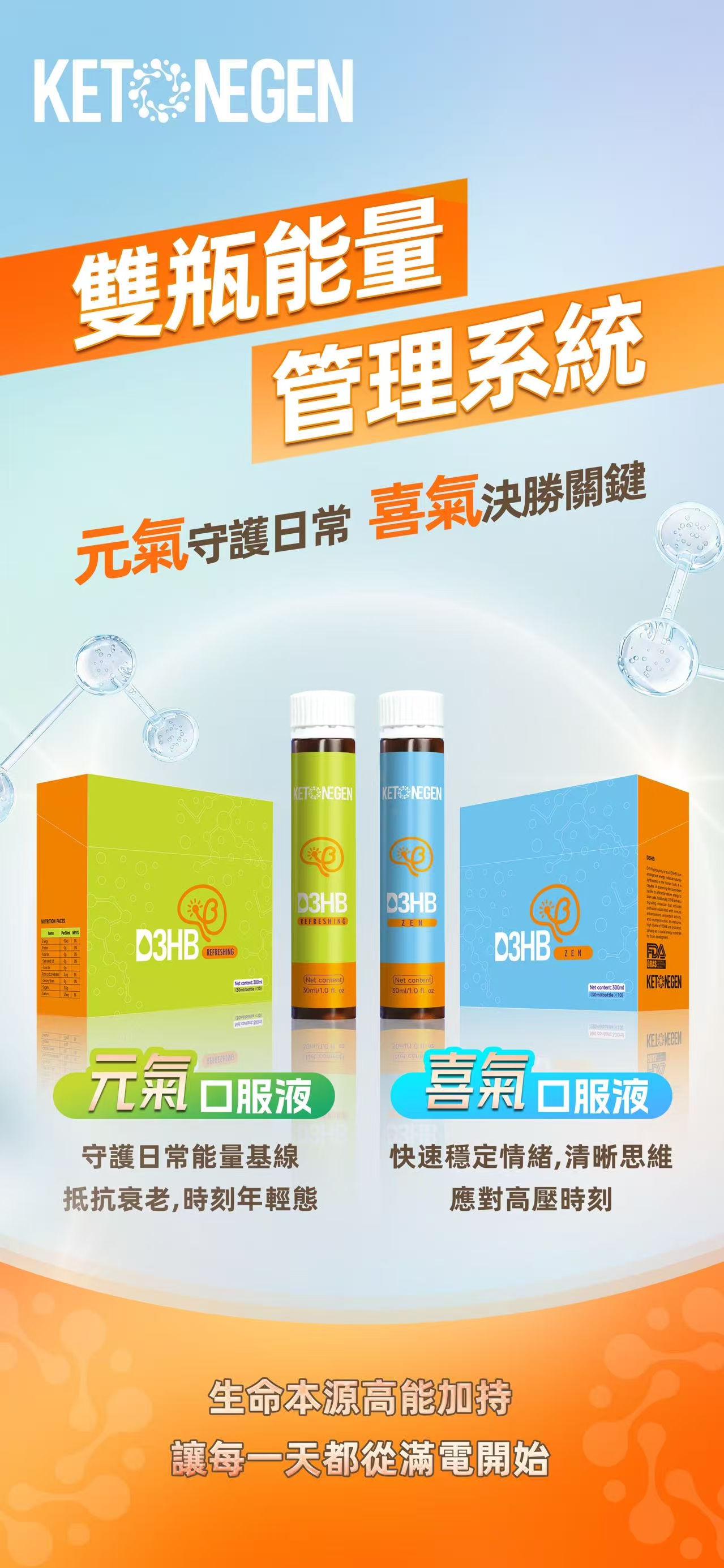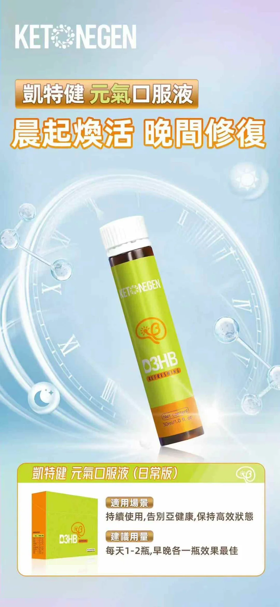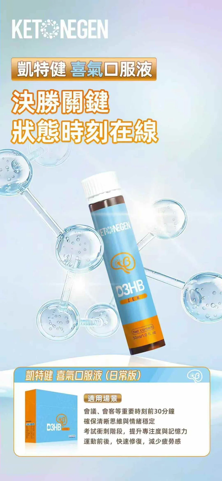 凱特健活能貝塔酸(D3HB),以人體可利用的酮體能量為核心,為大腦與身體提供穩定、高效的能量支持,讓你在每一個關鍵時刻,都能保持清醒、專注與行動力。