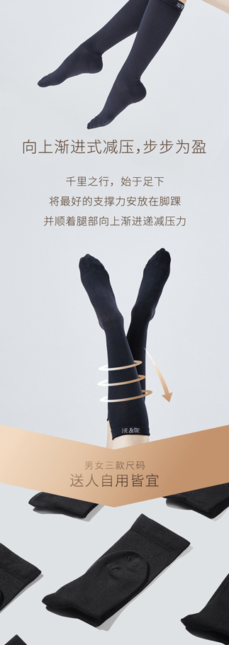 舒緩腿部疲勞,緩解關節不適 長時間穿著可幫助減少腿部腫脹,緩解因久站、運動後產生的腿部疲勞和關節不適感,同時改善腿部僵硬、無力等情況。