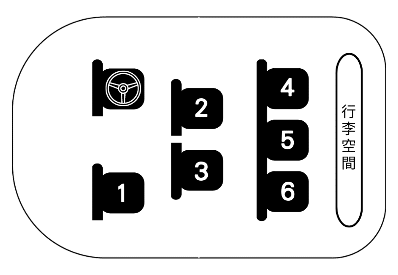 • 容納 6 件 24 吋行李箱及手提行李(依實際情況而定)。