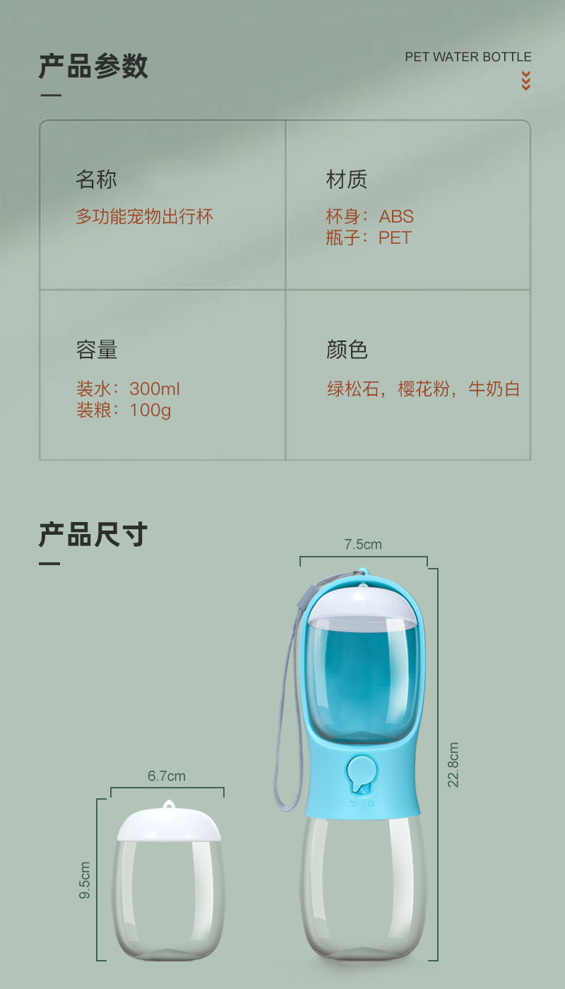 容量:300ml/550ml裝水+100g裝糧