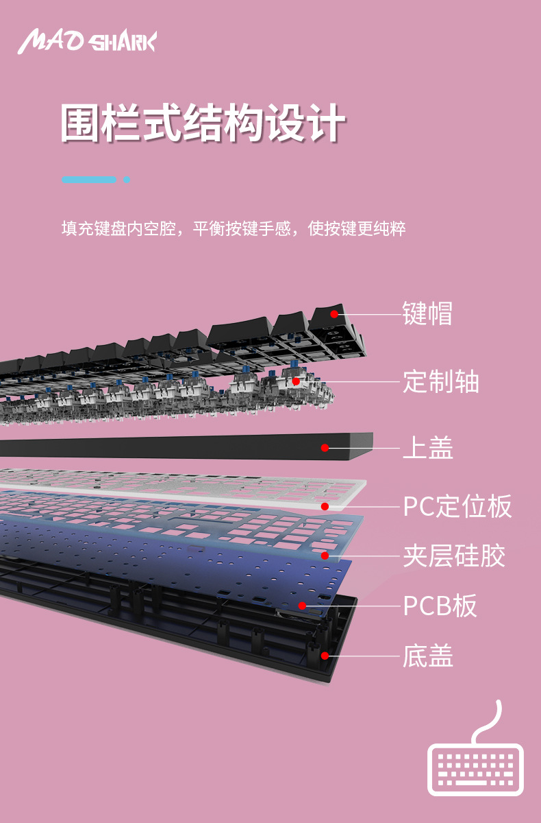 ▸填充鍵盤內空腔,平衡按鍵手感,使按鍵更純碎。