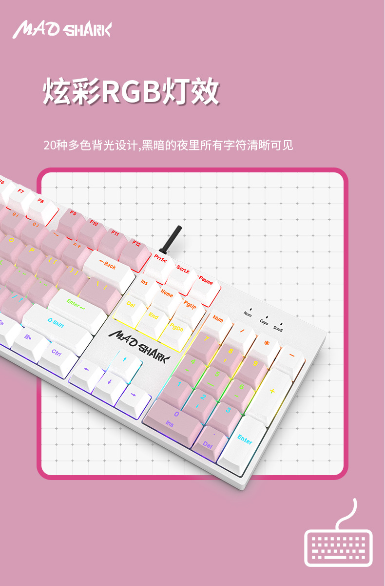 ▸20種多色背光設計,黑暗中所有字符依然清晰可見。