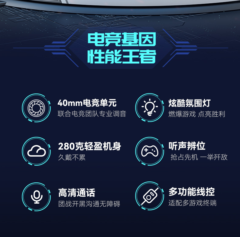 ▸HIFI大動圈喇叭:40mm全頻重炮喇叭單元,配合精工鍛造腔體結構,精準還原戰場音浪。用清晰的音質,廣闊的音域,豐富的細節,為你撥開戰爭迷霧。