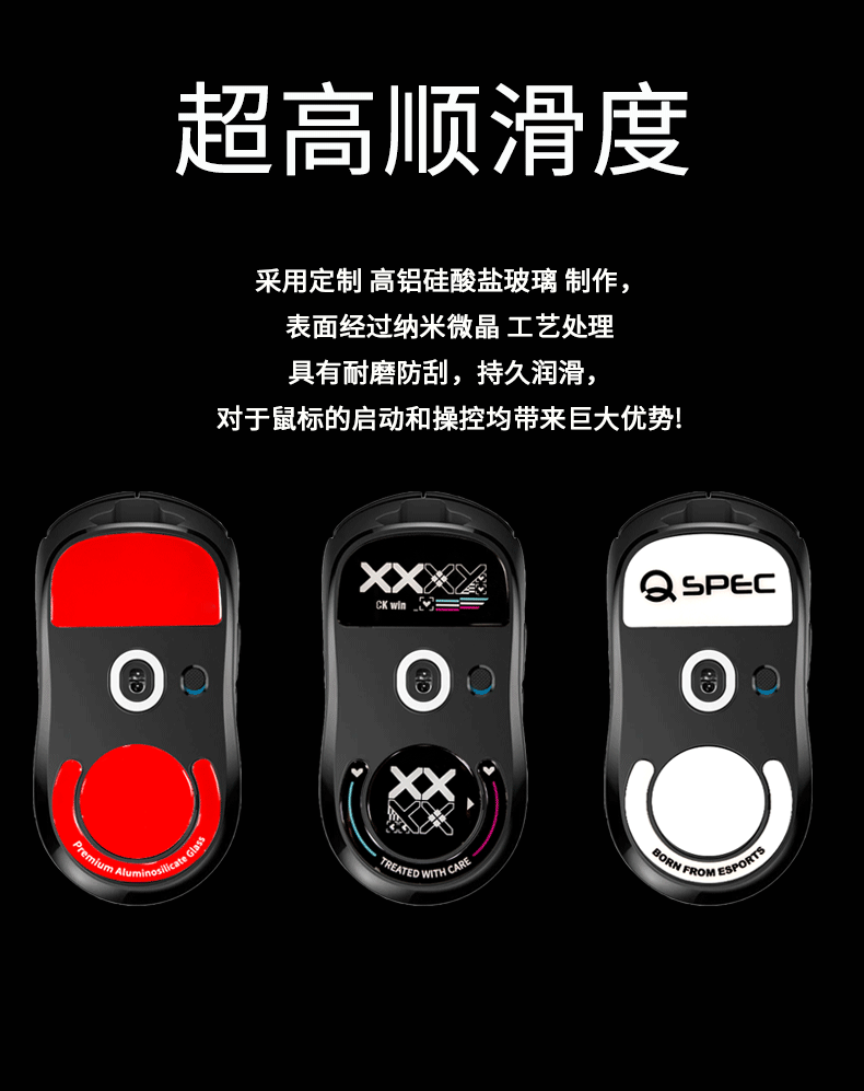 ▸採用定制高鋁硅酸鹽玻璃製作,表面經過納米微晶工藝處理,具有耐磨防刮,持久潤滑的特點,對於鼠標的啟動和操控均帶來巨大的優勢;2.5D圓弧邊緣工藝打造,手感更絲滑,啟動更迅速。