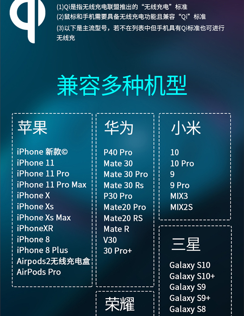 ▸高功率無線快充組件:急速補充設備電量(支持所有打在Qi無線充電協議的設備)