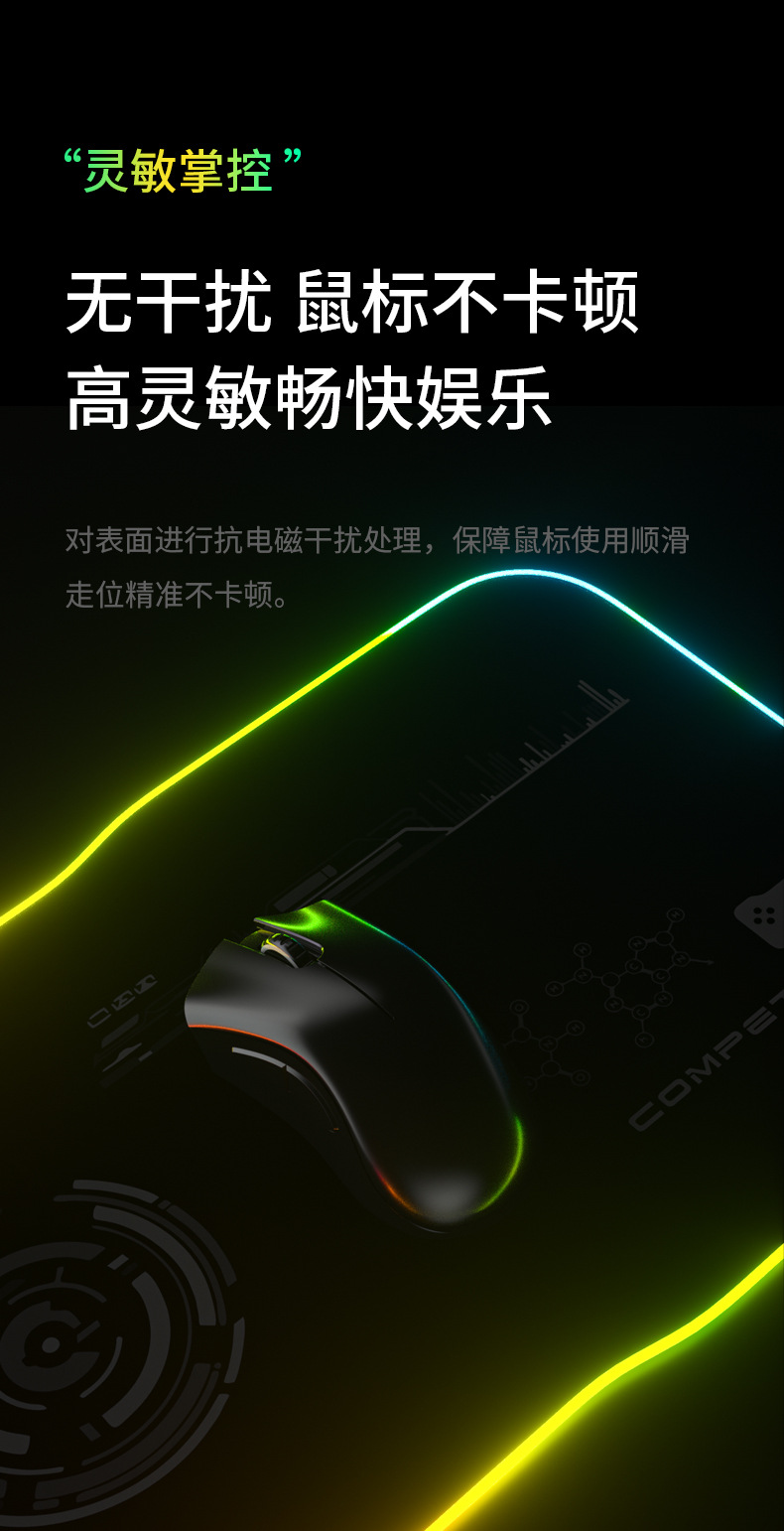 ▸鼠標墊表面進行抗電磁干擾處理,保障鼠標使用順滑,走位精准不會卡。