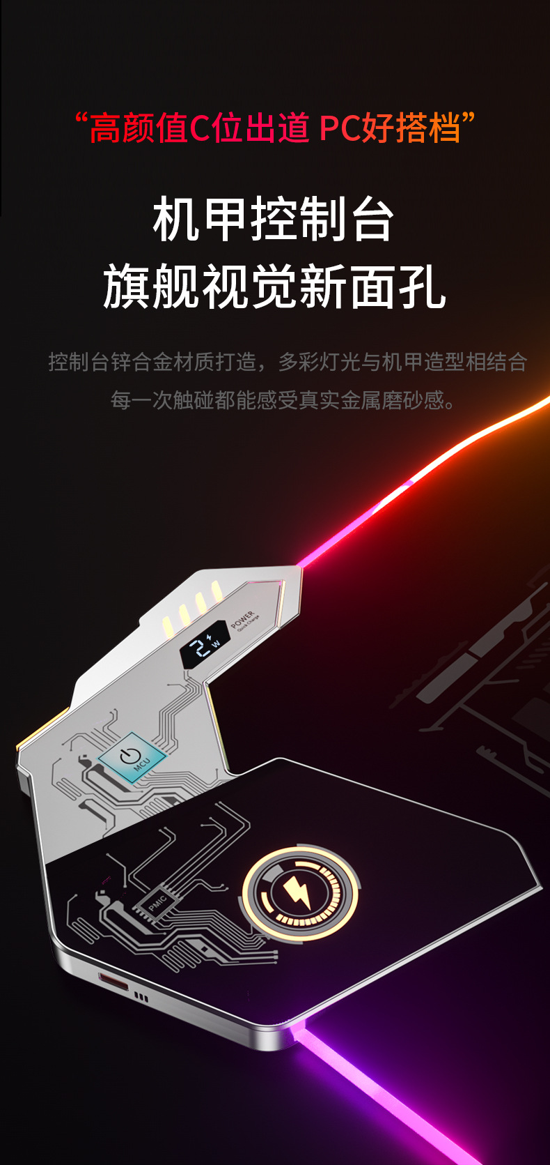 ▸控制台由鋅合金材質打造,多彩燈光與機甲造型相結合,每次觸碰都能感受到金屬磨砂感。
