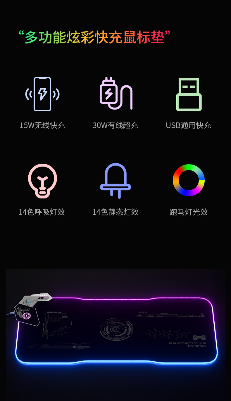 產品:RGB無線有線充滑鼠墊