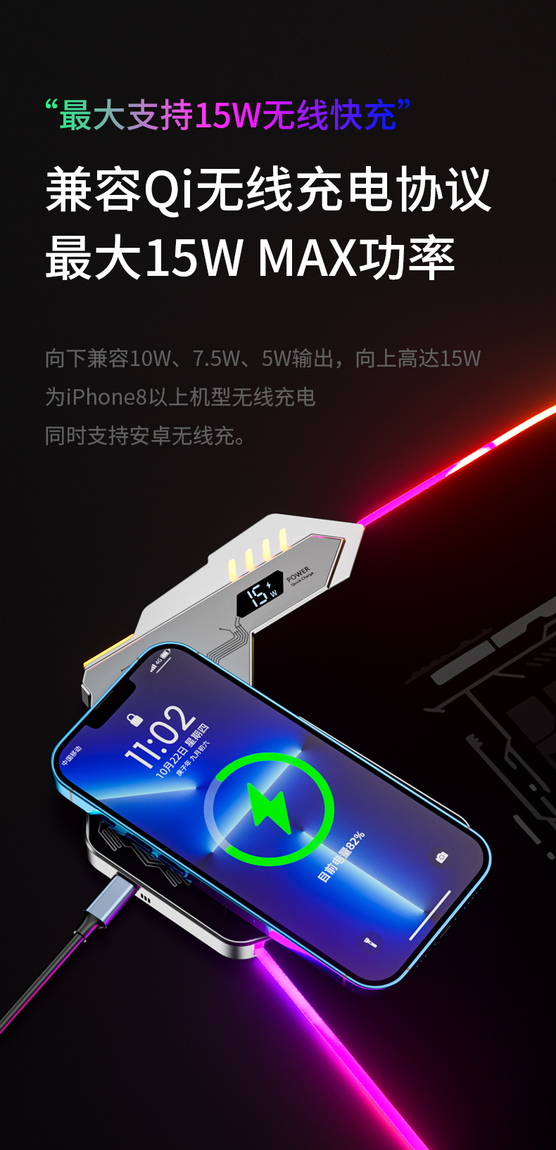 充電形式:15W無線快充(兼容Qi無線充電協議)+30W有線超充+USB通用快充