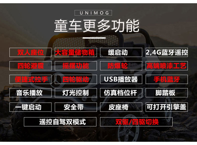 ▸四輪驅動,動力更強勁,爬坡行駛更順暢。