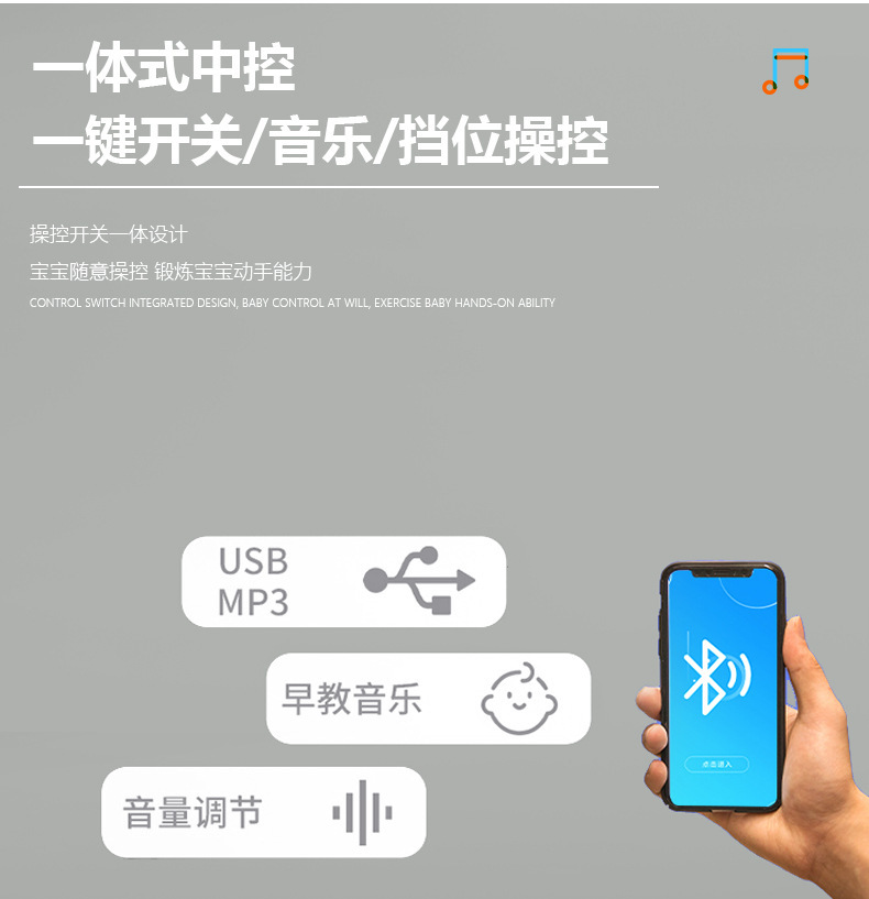 ▸一體式中控,讓孩子隨意操控,鍛煉寶寶操控能力。