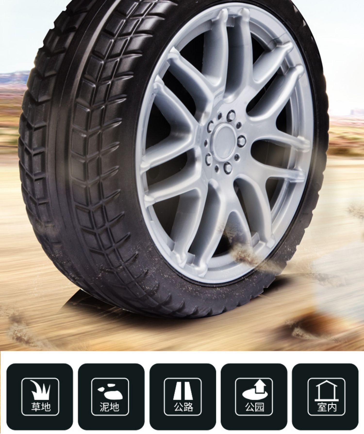 ▸防爆越野軟輪,採用優良無毒無氣味材質,有效減少顛簸感,結實耐用。