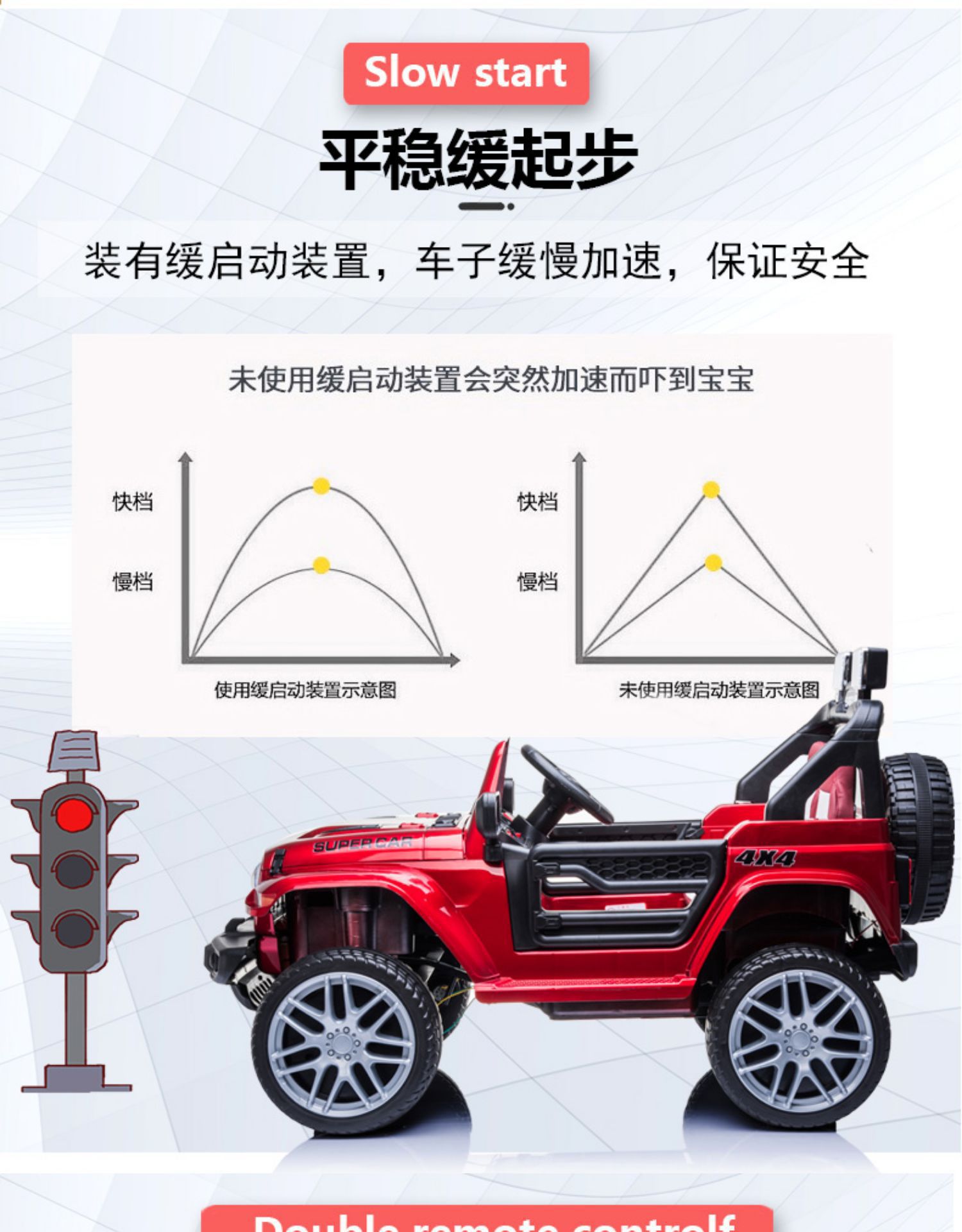 ▸裝有緩啓動裝置,車子緩慢加速,保證安全。