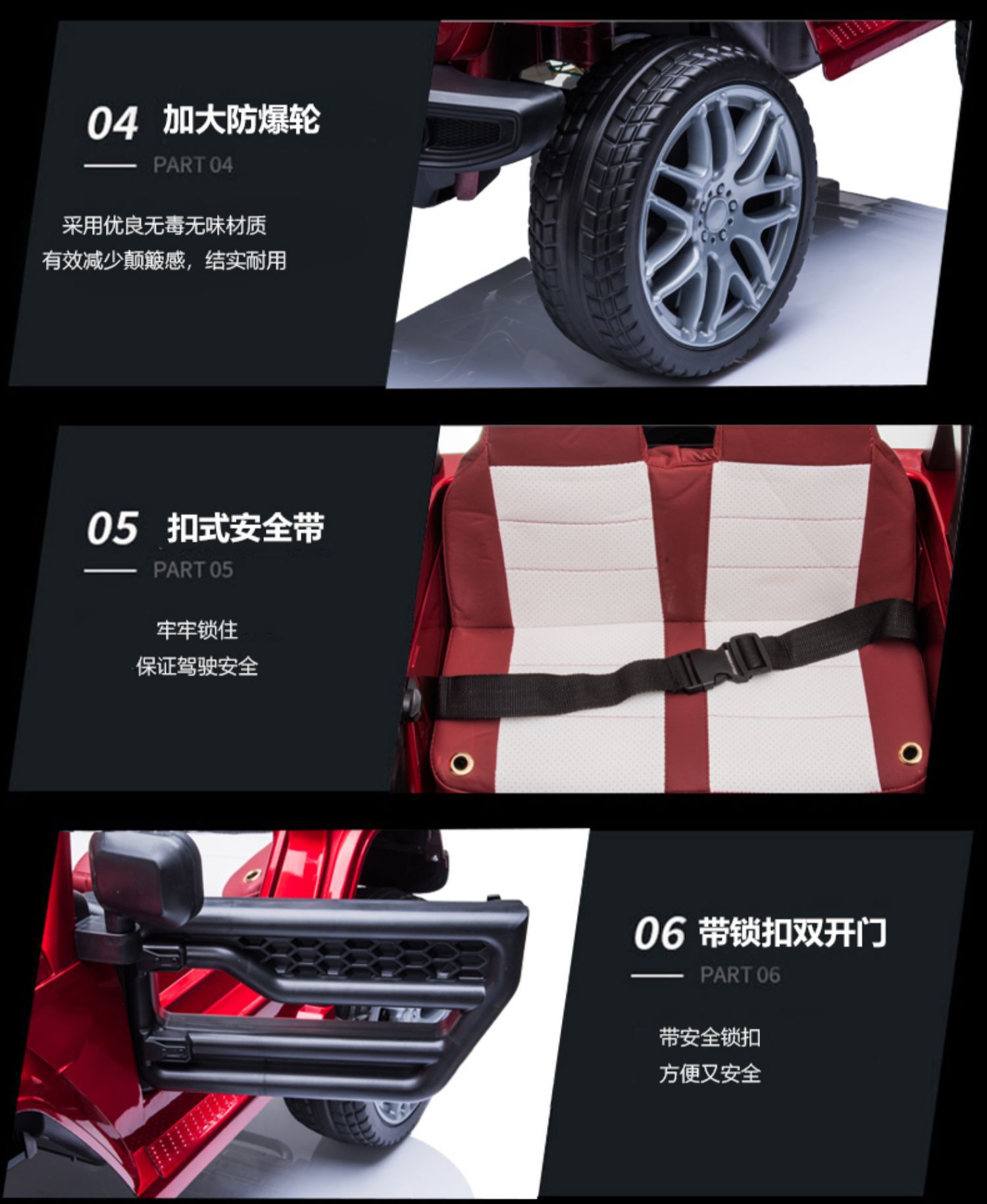▸紐扣式安全帶,牢牢鎖住,保證駕駛安全。