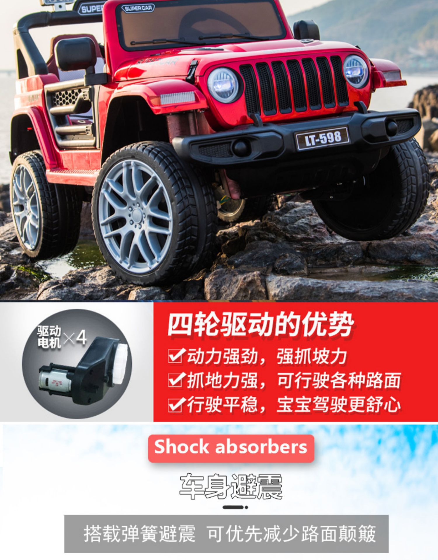 ▸四輪驅動,動力强勁,抓地力強,可平穩形式各種路面。