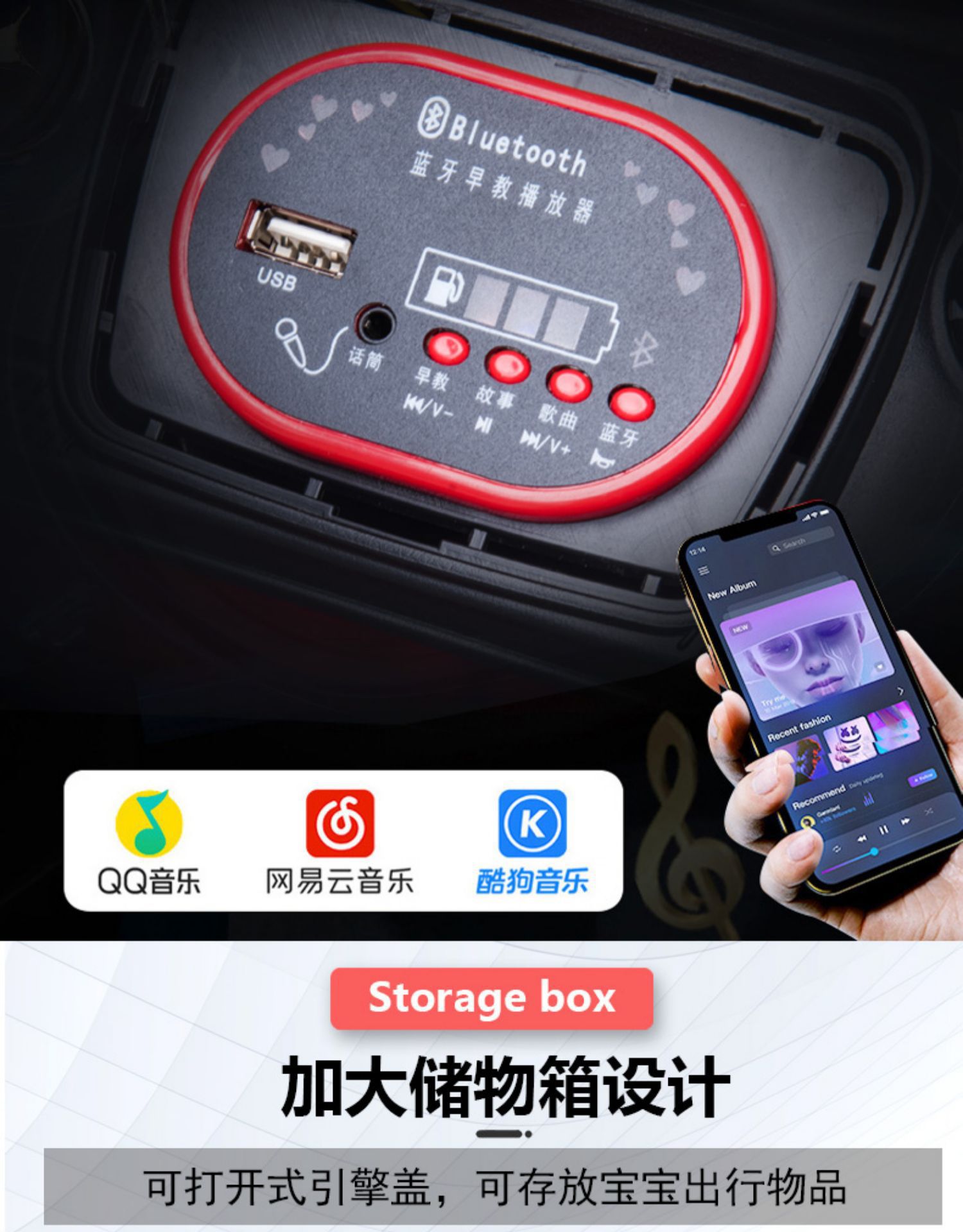 ▸加大儲物箱,可打開式引擎蓋設計,方便存放出行物品。