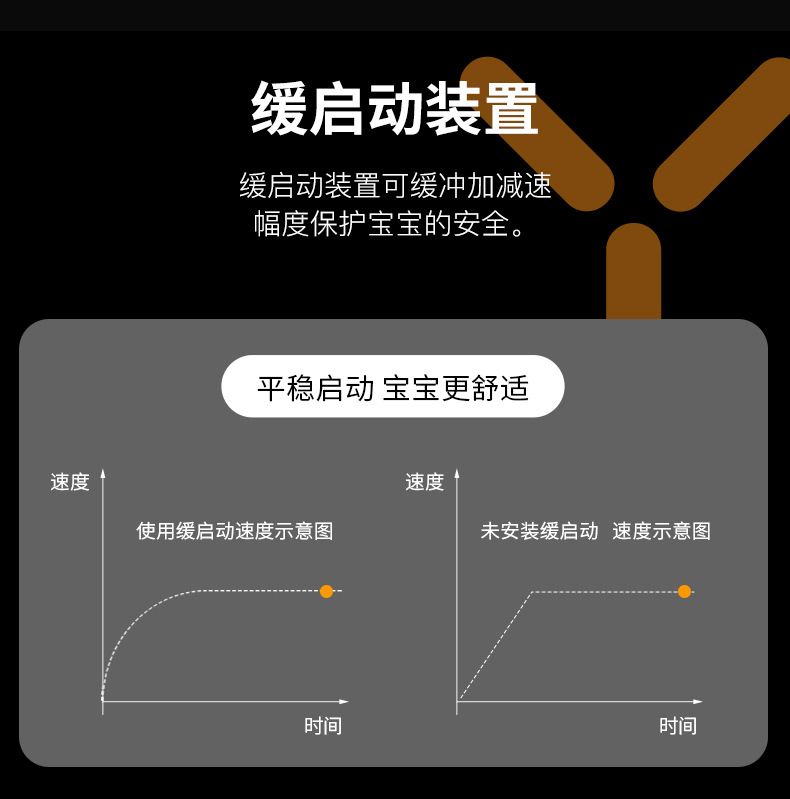 ▸緩啟動裝置可緩衝加減速幅度,保護小孩的安全。