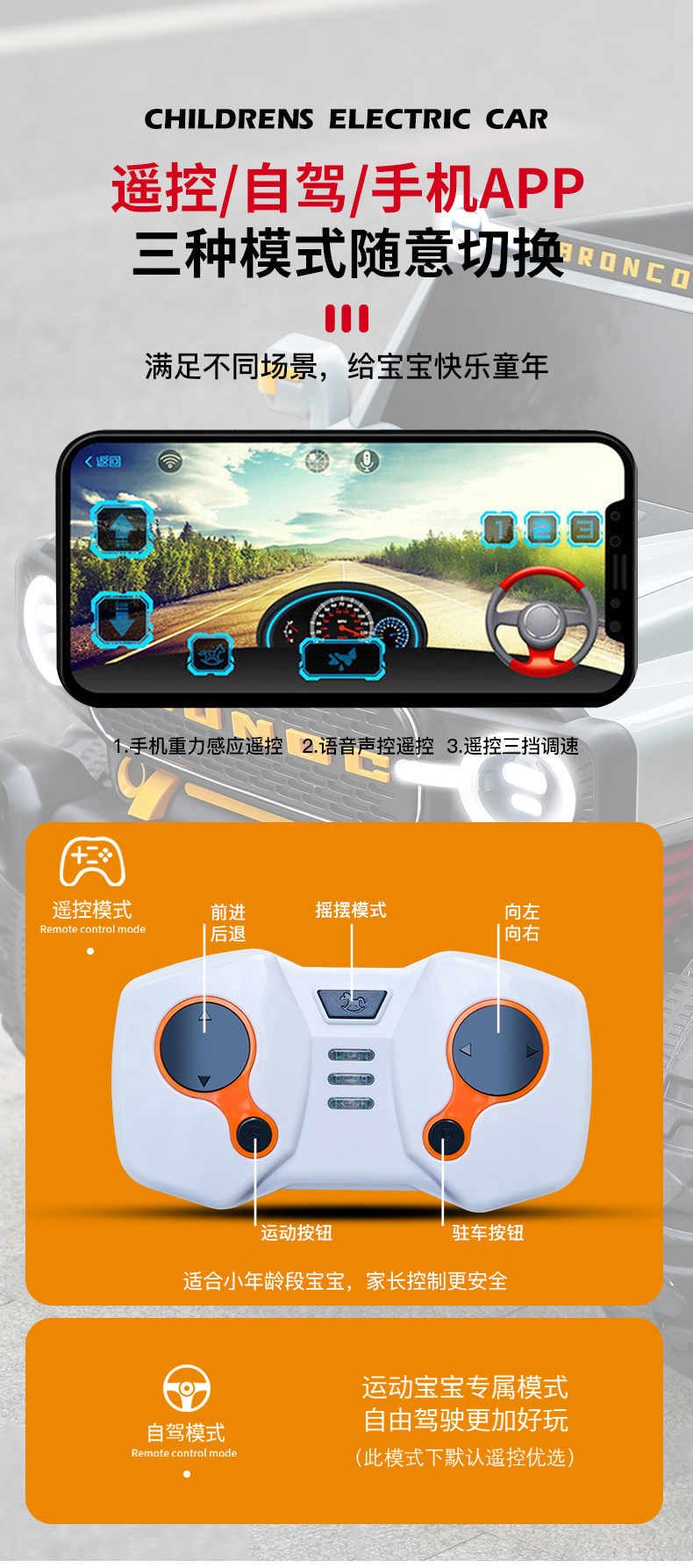 ▸遙控/自駕/手機APP三種模式隨意切換,滿足不同場景。