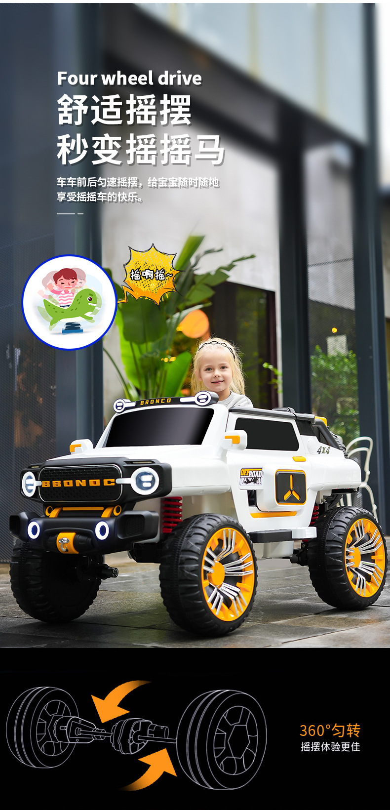 ▸設置搖擺功能,車輛前後勻速搖擺,給小孩享受搖搖車的快樂。