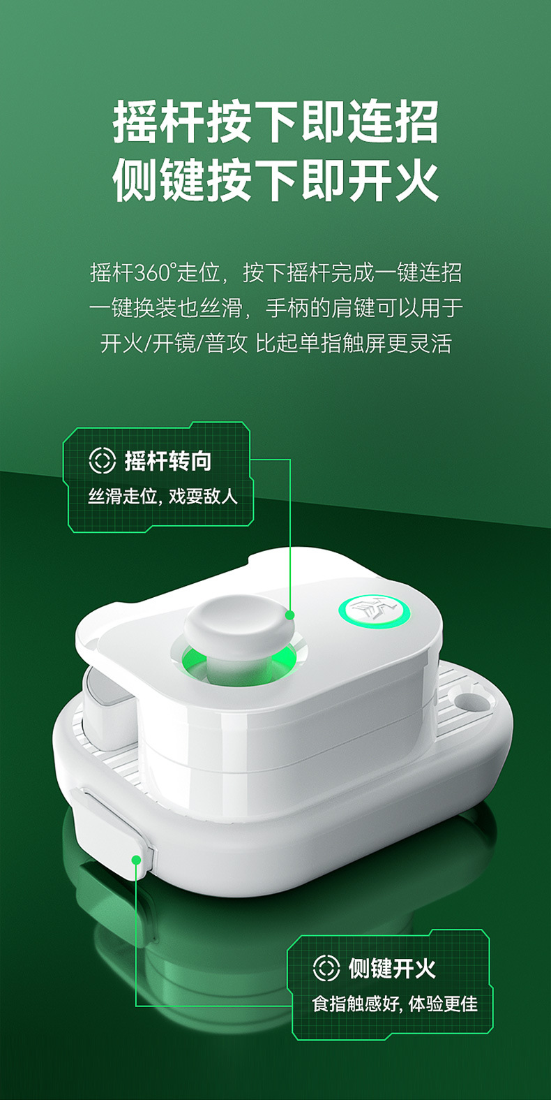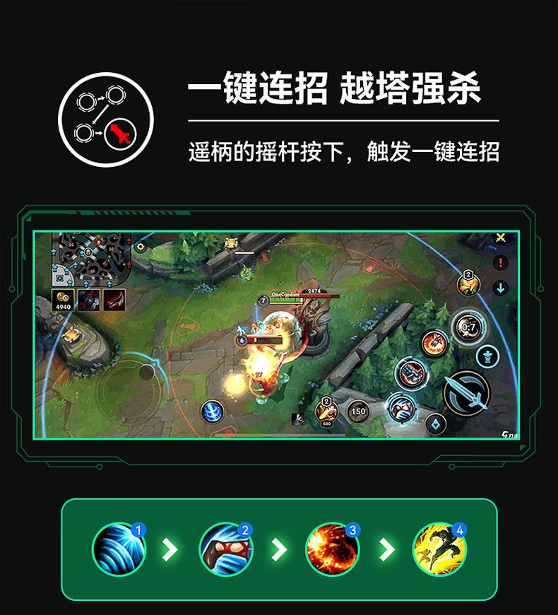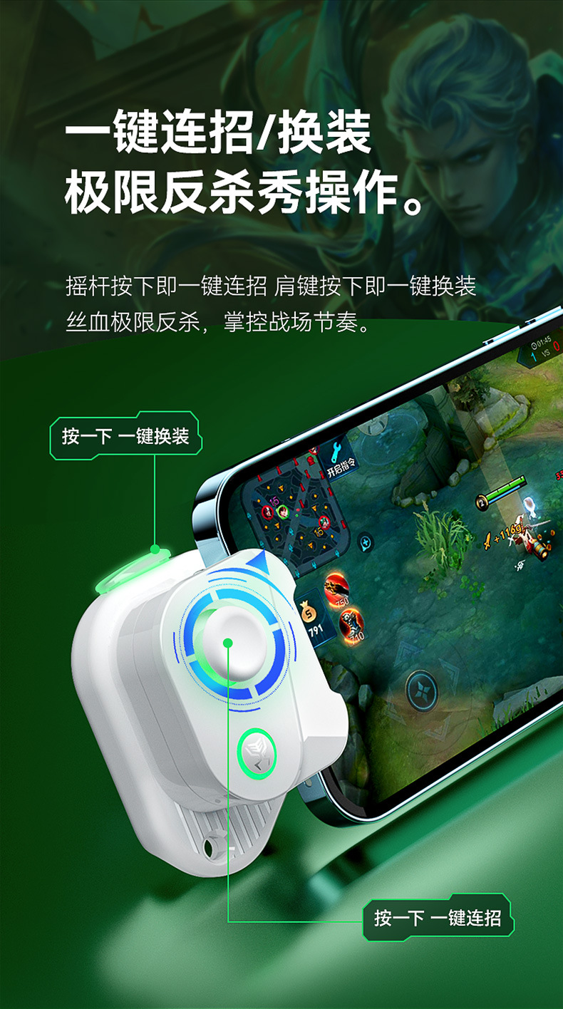 ▸物理的實體搖桿,對比手遊自帶的虛擬搖桿可以帶來更好的走位轉向操控體驗,走位手感比搓屏玩家更順滑。