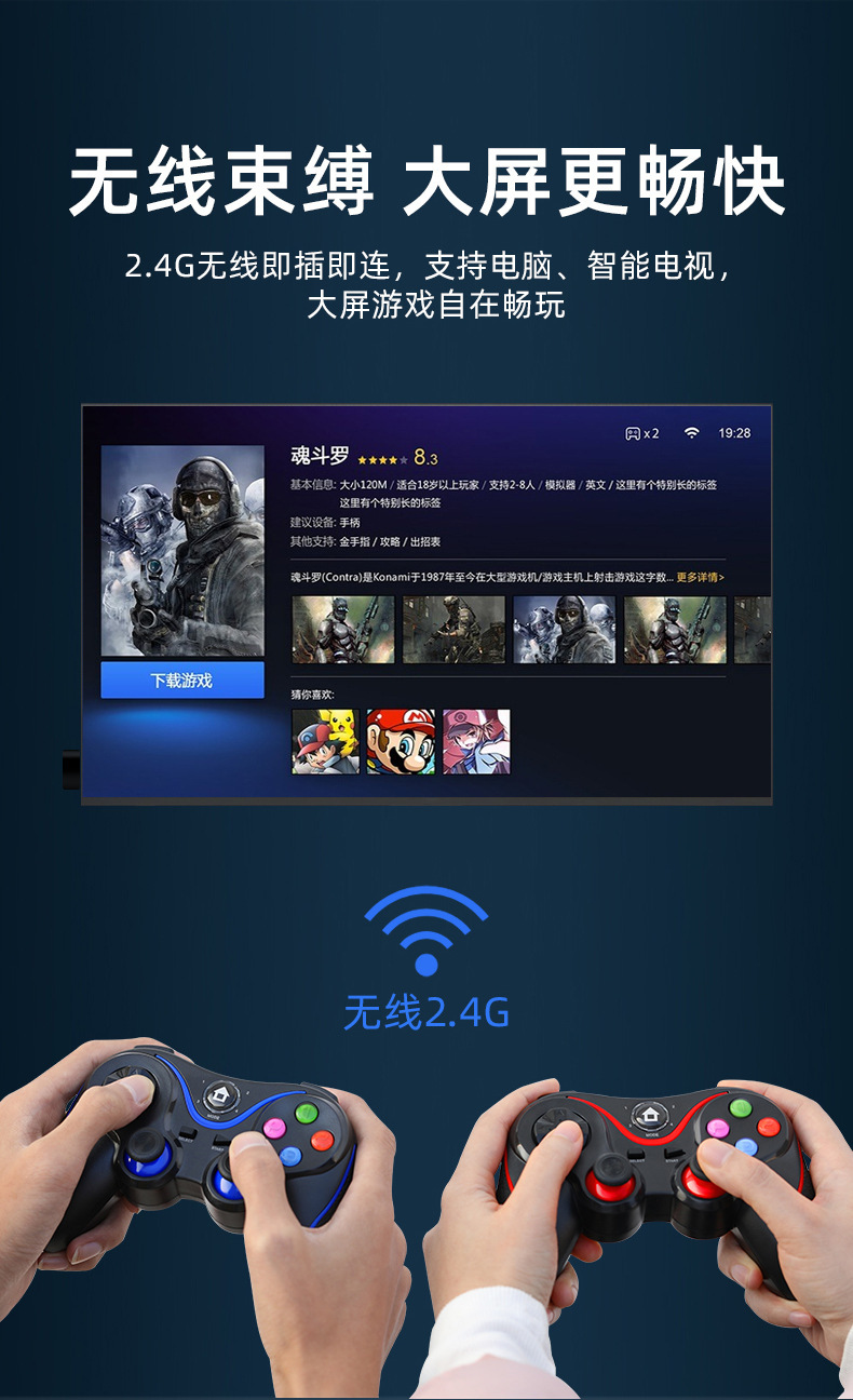 ▸2.4G無線即插即連,支持電腦、智能電視,大屏遊戲玩得更暢快。